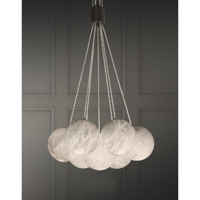 The BELLA SPHERE chandeliers hang in powerful, satisfied bundles. They form architecturally diverse arrangements that can be combined in sets of three, seven or nine spheres. Because our lighting are made by a workforce that still relies on traditional working methods, each product is unique and carries with it sensitivity of the artisan. Attract attention, provoke emotion to what the imagination with games of light and matter, such as the ambition and the creative spark of existing elements of the space.