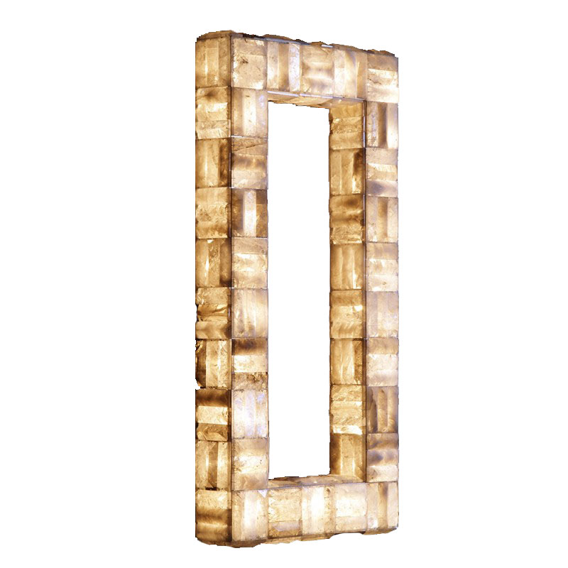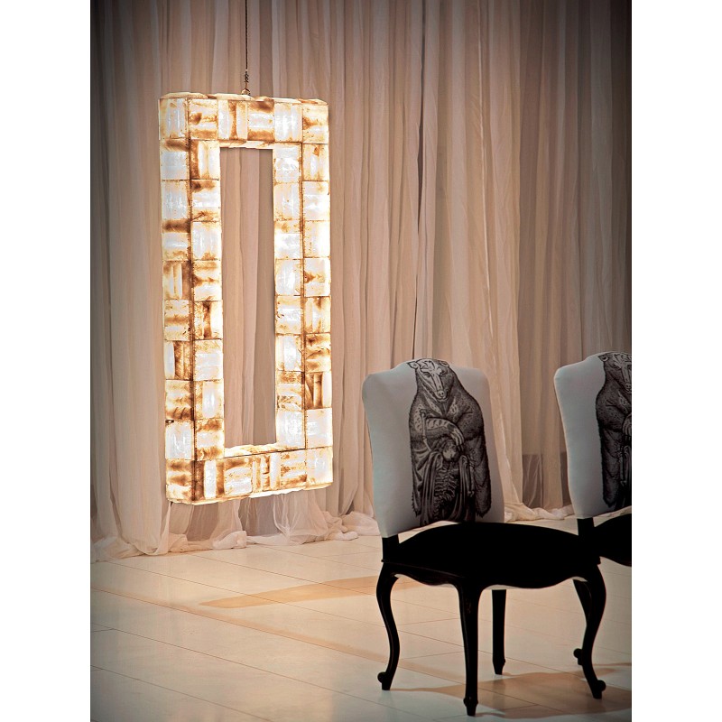 Playing off a solid and avoid, this rock crystal chandelier frames the space leaving a transparent look. Suspended in a stairwell; imagined against a wall like an unexpected picture; or horizontally above a table… Whatever its universe, it stresses sensitivity to architecture, and can be imagined in many more unexpected versions: Atmosquare subtly joined together from many quartz medallions, to be hung horizontally or vertically