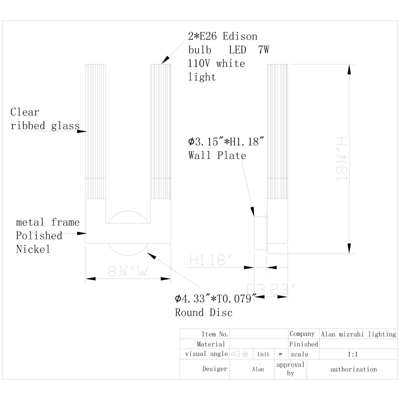 | 14” Wide x 15.5” Height x 4” Depth. ( 2 Light) | $330.00 |