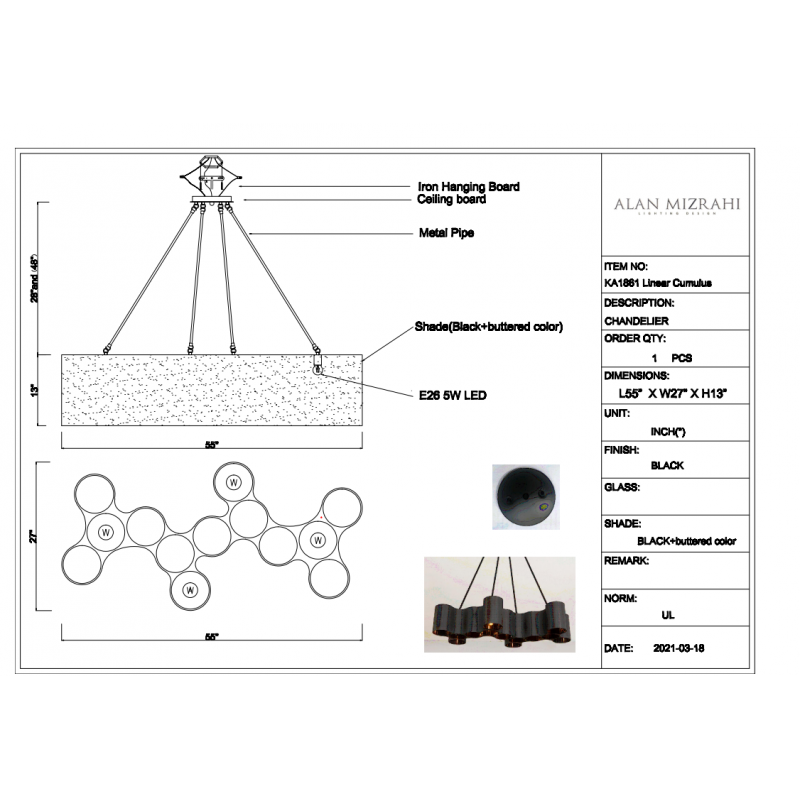 Bulbs: Six candelabra sockets, 40 watts incandescent maximum