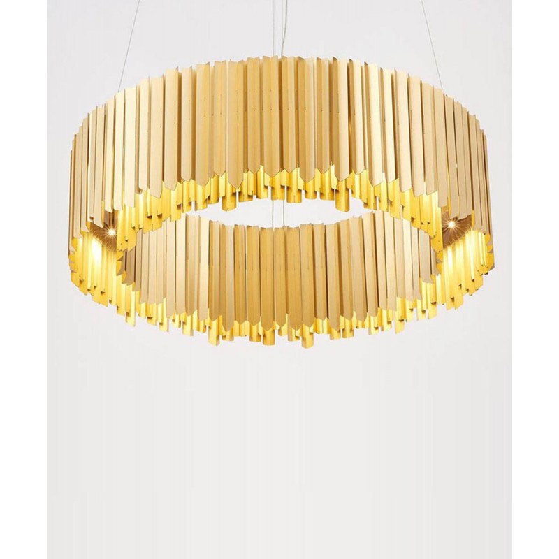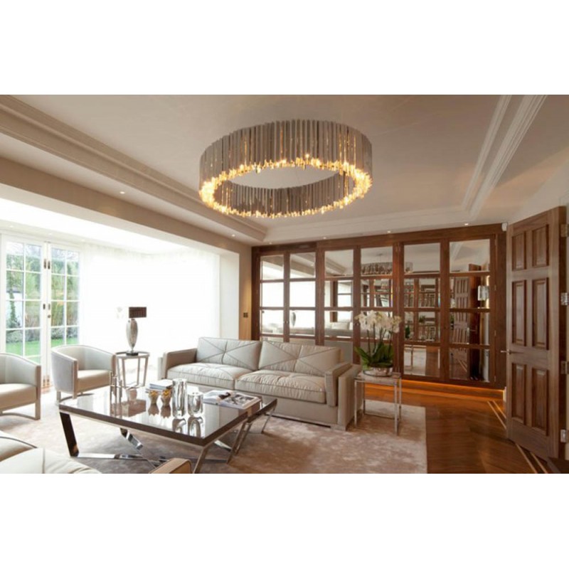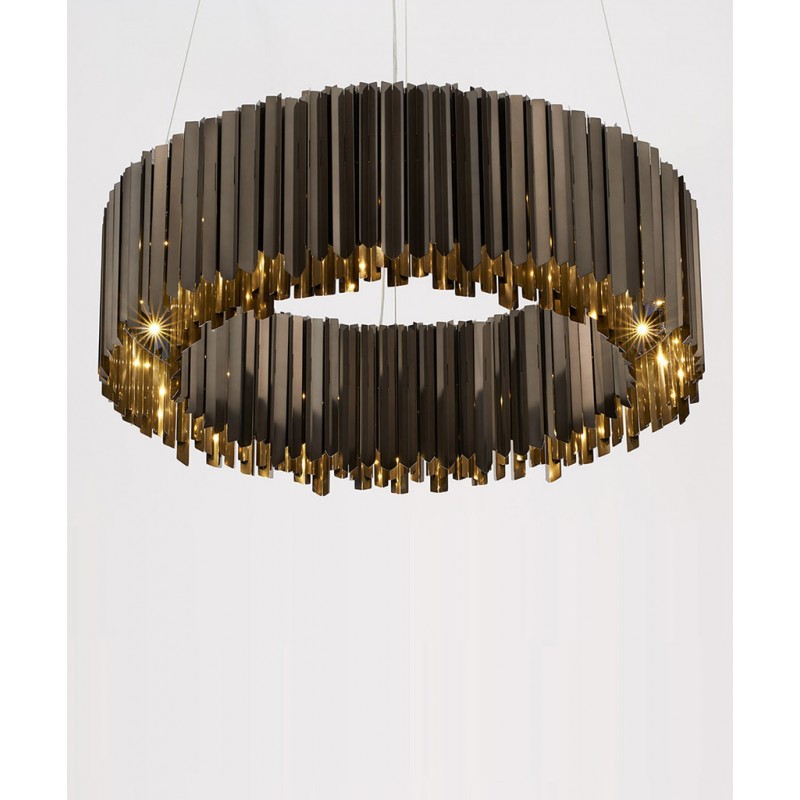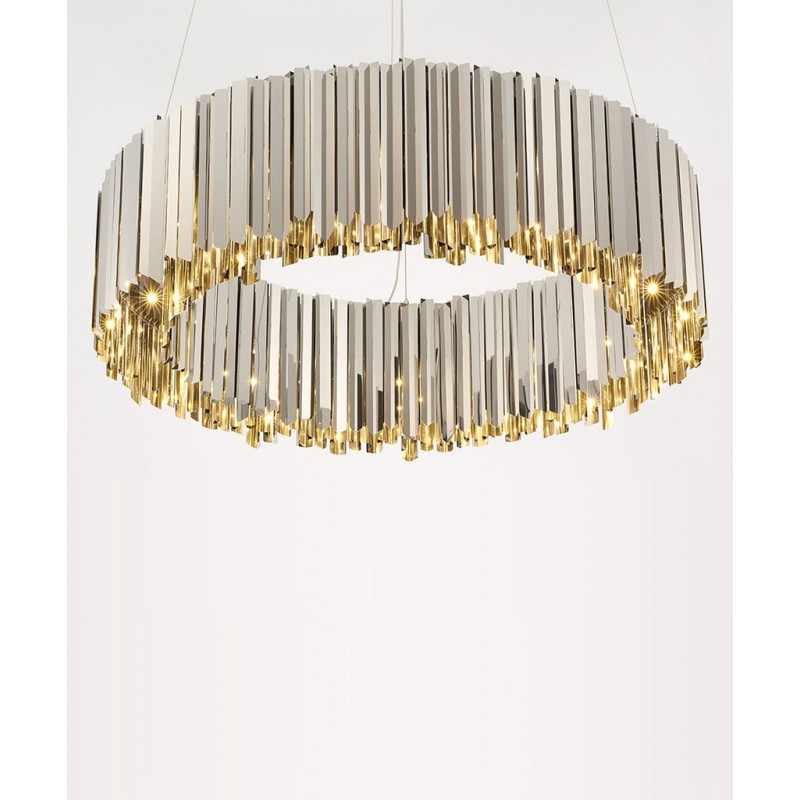 Designed by Tom Kirk is the original Facet Chandelier. Made from mirror-polished stainless steel or satin aluminum, the exterior facets are acid etched and formed individually to create the body of the light. Inside, two tracks of LEDs provide a unique effect — reflecting infinitely within the facets and casting warm, ambient light. Please note that inside finish is always the same as the external finish. Having created custom chandeliers for over three decades, we specialize in bringing lighting concepts into reality, whether your inspiration comes from a rough sketch, an existing chandelier, our original concepts, or even your own creative imagination. Large or small, our team can meet the challenge.