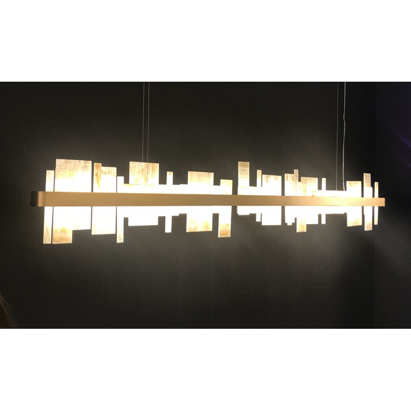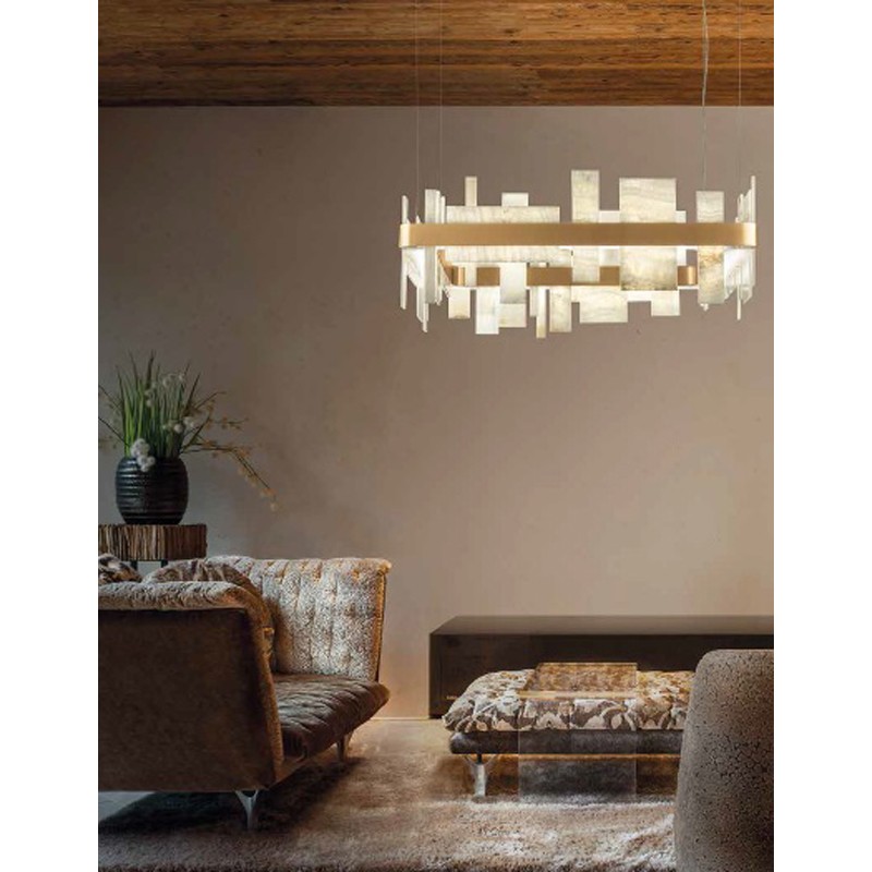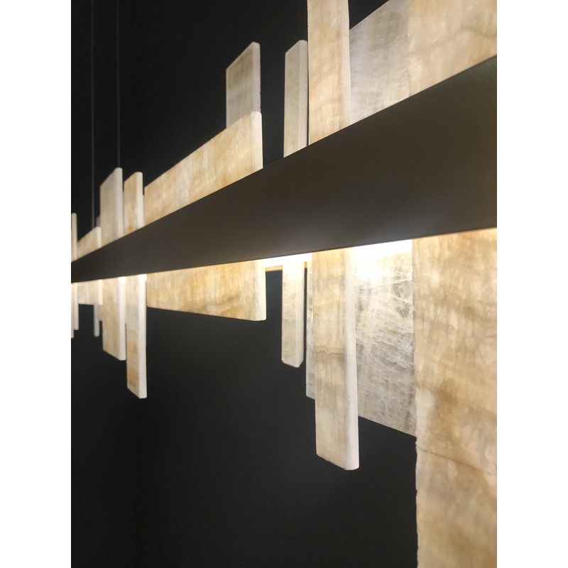 Inspired by the most ancient Venetian art with impeccable dedication to taste and style. Giving form to light by illuminating this natural Onyx and creating a piece of beauty. Original one of a kind chandelier. We approach this sculptural object in a contemporary, unexpected, and creative way. Light and shadow interplay while existing harmoniously, using both to manipulate space and thought.