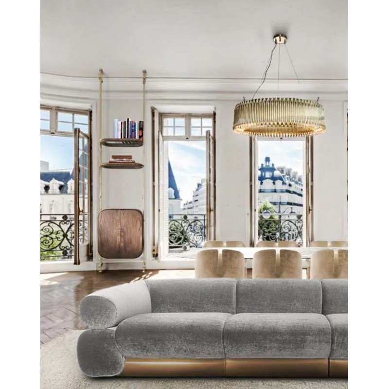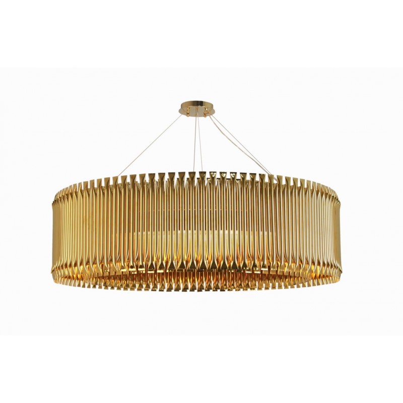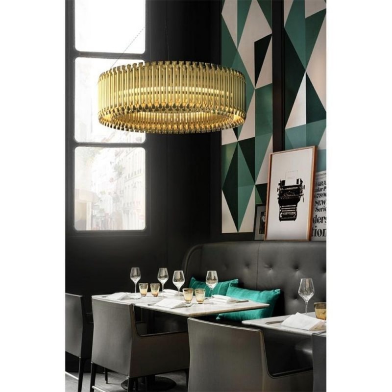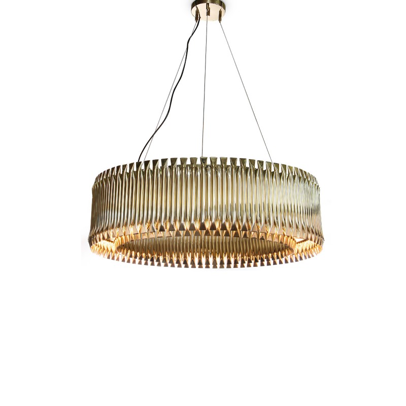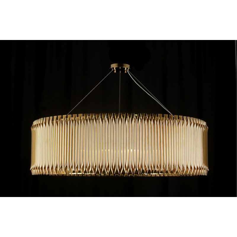 Ideal for a classic living room with a modern touch, This suspension lamp came to reinvent classic designs with a high aesthetic feeling. Its shape or dimension can assume a round, oval, square or rectangular format to suit just perfectly you're dining table or living room. Composed by geometric golden tubes, it reflects the sophistication of a timeless iconic piece. Our company provides collections that can make all your project dreams come true. Lighting products play an important role in any room setting.