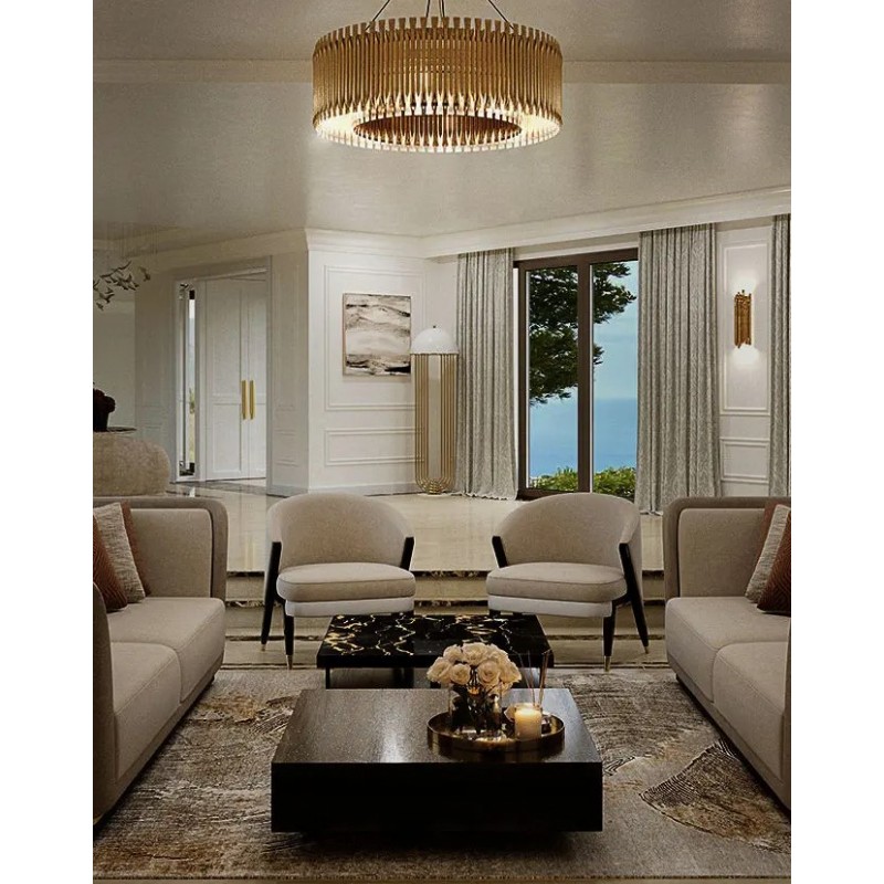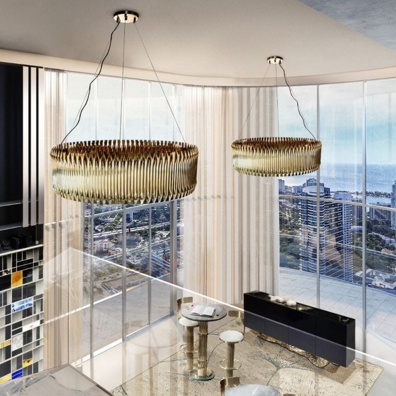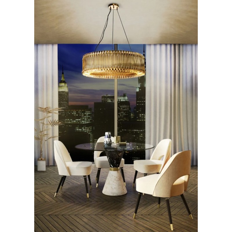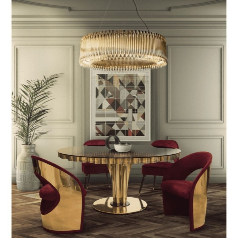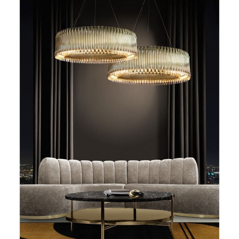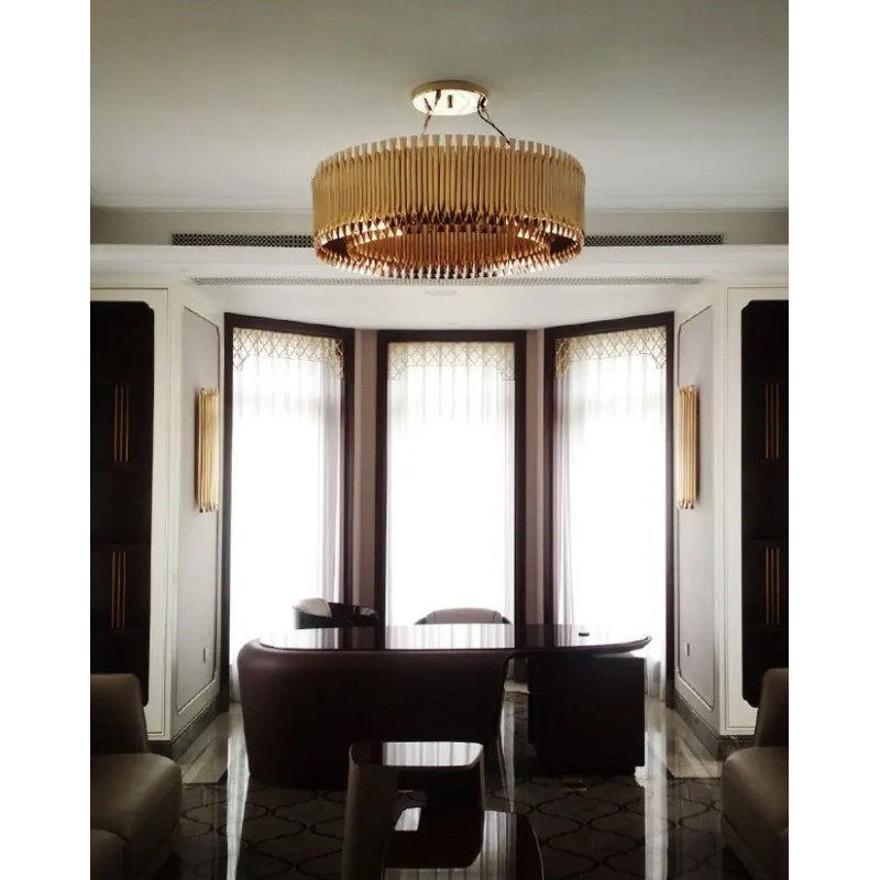 Ideal for a classic living room with a modern touch, This suspension lamp came to reinvent classic designs with a high aesthetic feeling. Its shape or dimension can assume a round, oval, square or rectangular format to suit just perfectly you're dining table or living room. Composed by geometric golden tubes, it reflects the sophistication of a timeless iconic piece. Our company provides collections that can make all your project dreams come true. Lighting products play an important role in any room setting.