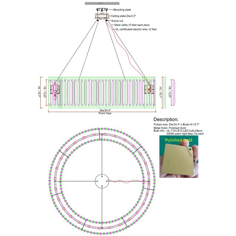 | Overall | 39.4" Diameter x 15.7" Height (Custom sizes also available) |