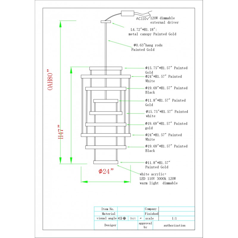 | Overall | 36” Diameter x 100” Height |