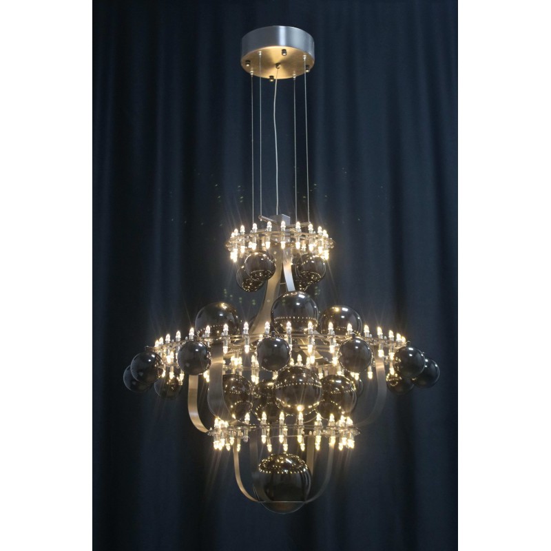 The splendor of a home often lies in the small, but important details, such as stunning lighting elements… This luxury suspension lighting is a deeply opulent solution bound to arouse your guests’ curiosity. Royal BB is so spectacular and extraordinary that it reminds of the solar system. It is solid while remaining beautiful and elegant. An excellent and precise work of craftsmen, Royal BB is fully hand-made and will complement the interior of any home – either in the living room or in the dining room and why not - the home office. The glossy finishing adds the royal flair and the delicate elegance in the design. Truly embracing the stately elegance of glass, the chandeliers go one step further – adorning the spherical forms with gold patterns, or leaving them plain, but accenting the look with gold fittings.