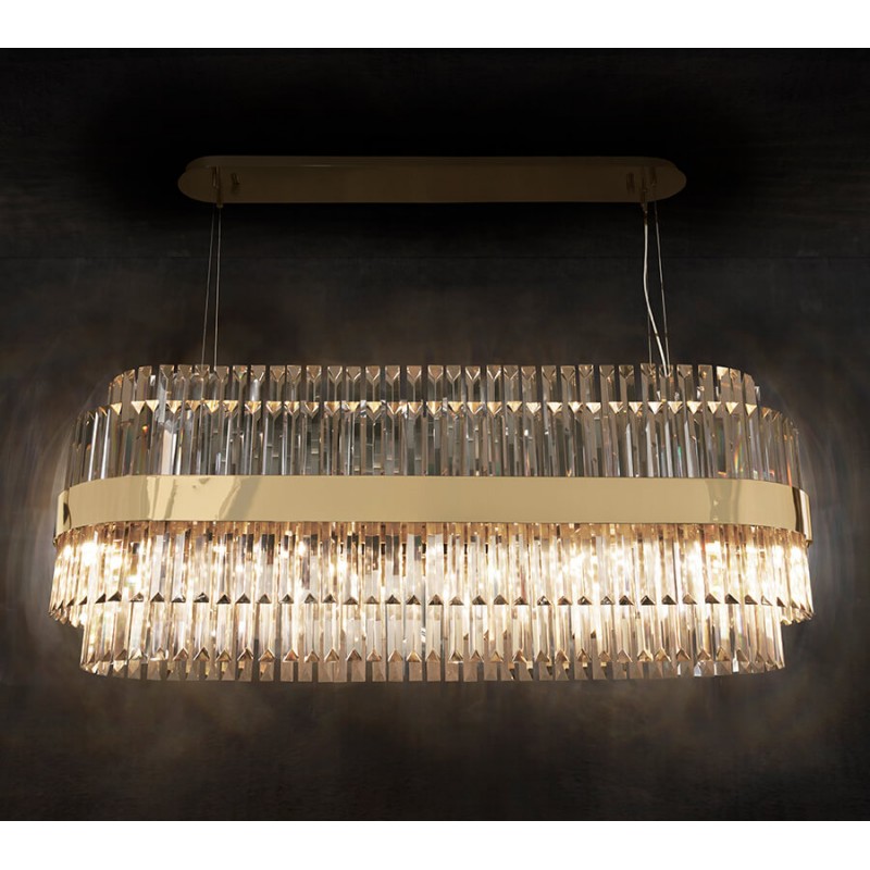 Liberty, a collection inspired by the famous Statue of Liberty, welcomes a new Snooker version. An elegant design made to enlighten the best interior design projects, from dining rooms to billiard rooms. Created with crystal and brass, finished with gold plating, this magnificent suspension piece is capable of giving a luxurious and glamorous look to any space. This product is a true jewelry for your space, creating a sophisticated and unique atmosphere. The Empire suspension gets its inspiration from the Empire family’s creation. These pieces combine classic forms with modern appeal, delivering the finest in your lighting and decor needs. In addition to providing an outstanding piece, we are also able to create this piece in whatever size, crystal hue, and finish you need. Let this show-stopper be the fixture that stops them in their tracks today