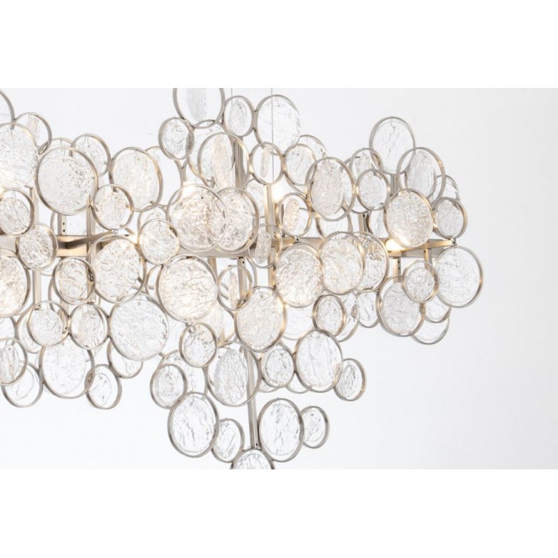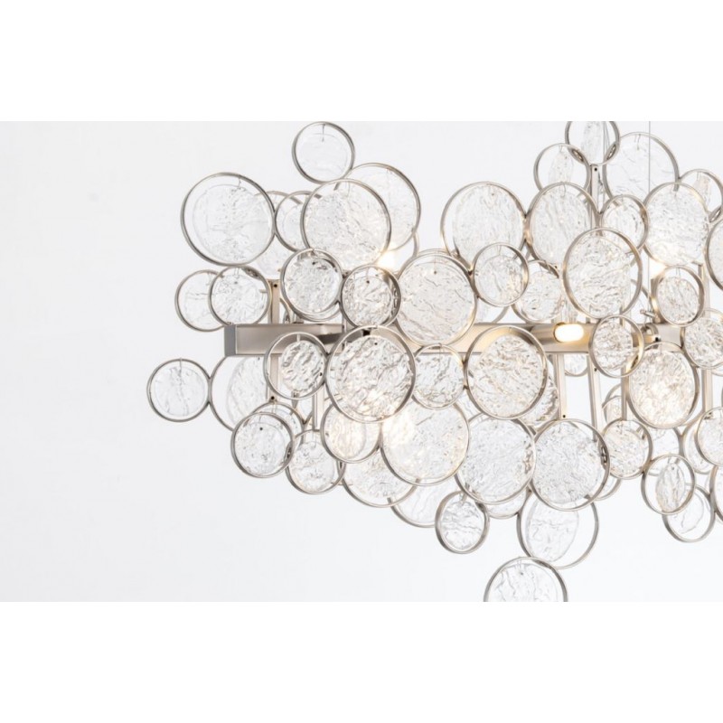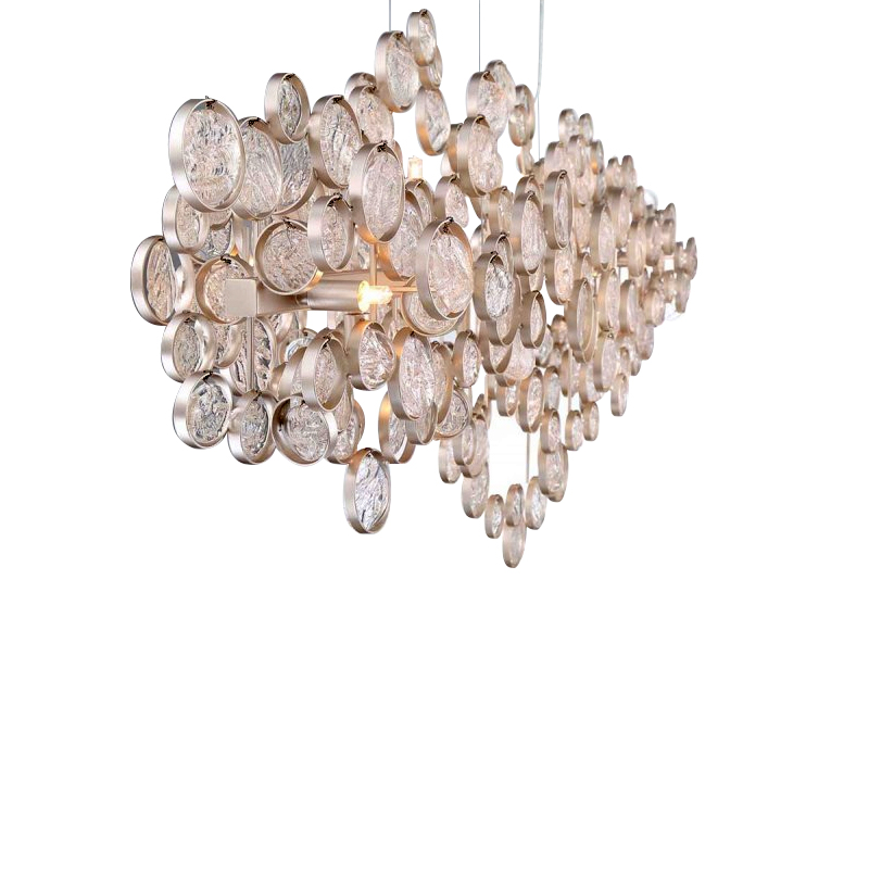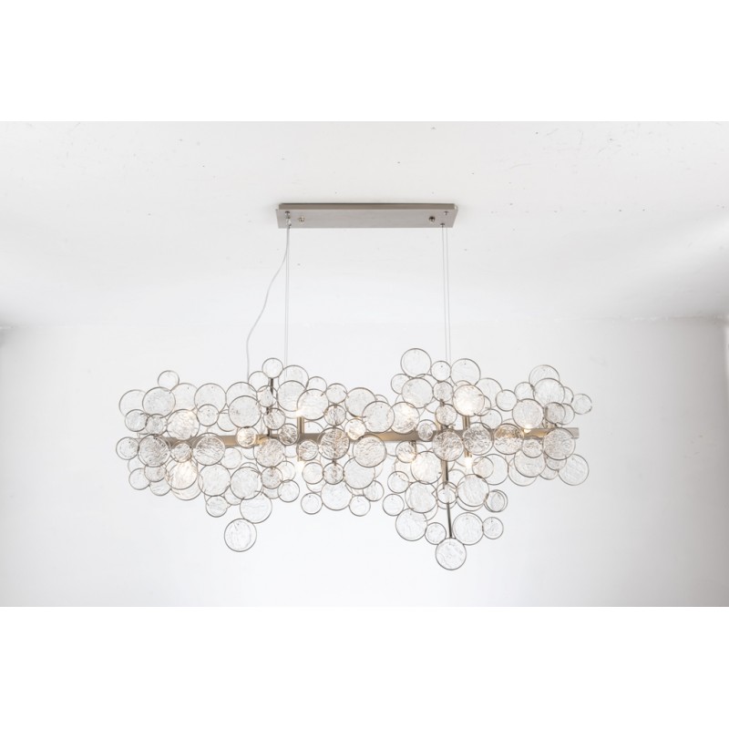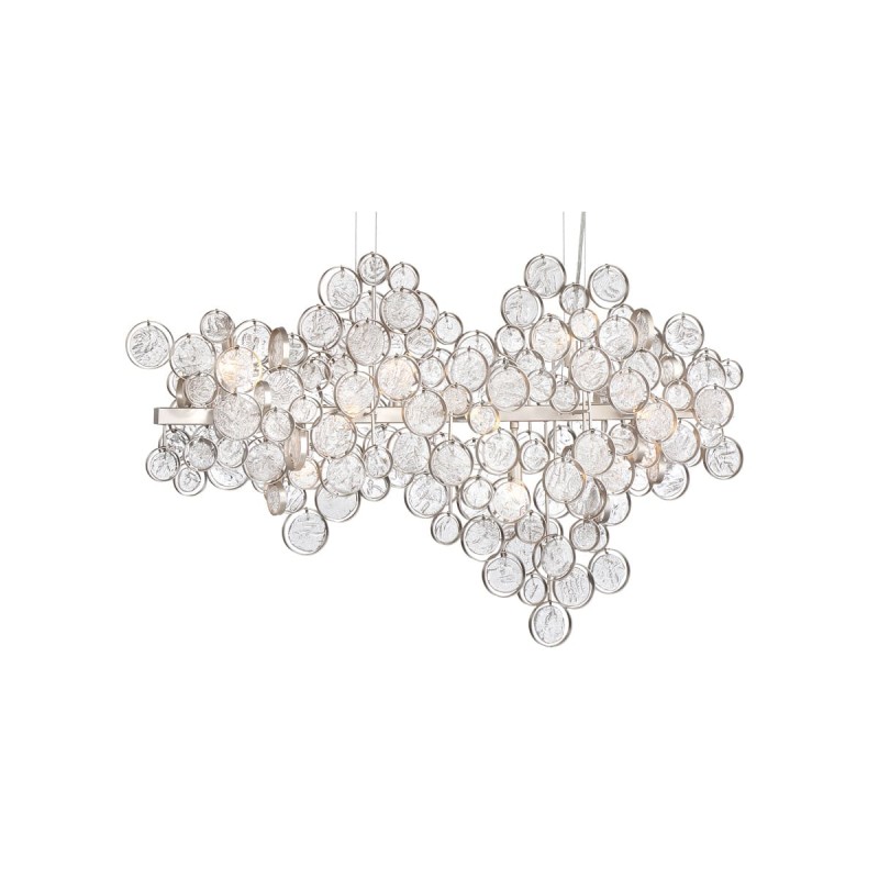 The TRENTO LINEAR is an intricate champagne silver metal wire frame adorned by delicately hand strung glass wafers. At Alan Mizrahi Lighting Design, we supply and manufacturer many highly sought-after designer pieces. All Chandelier can be customized by a number of lights, style, color and size to meet your specific needs. Every chandelier can also be combined with a matching table lamp and wall lamp to accomplish the best room design. Our company provides collections that can make all your project dreams come true….