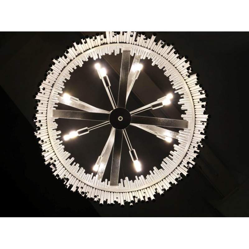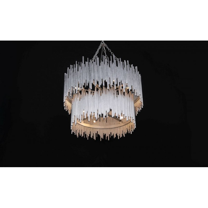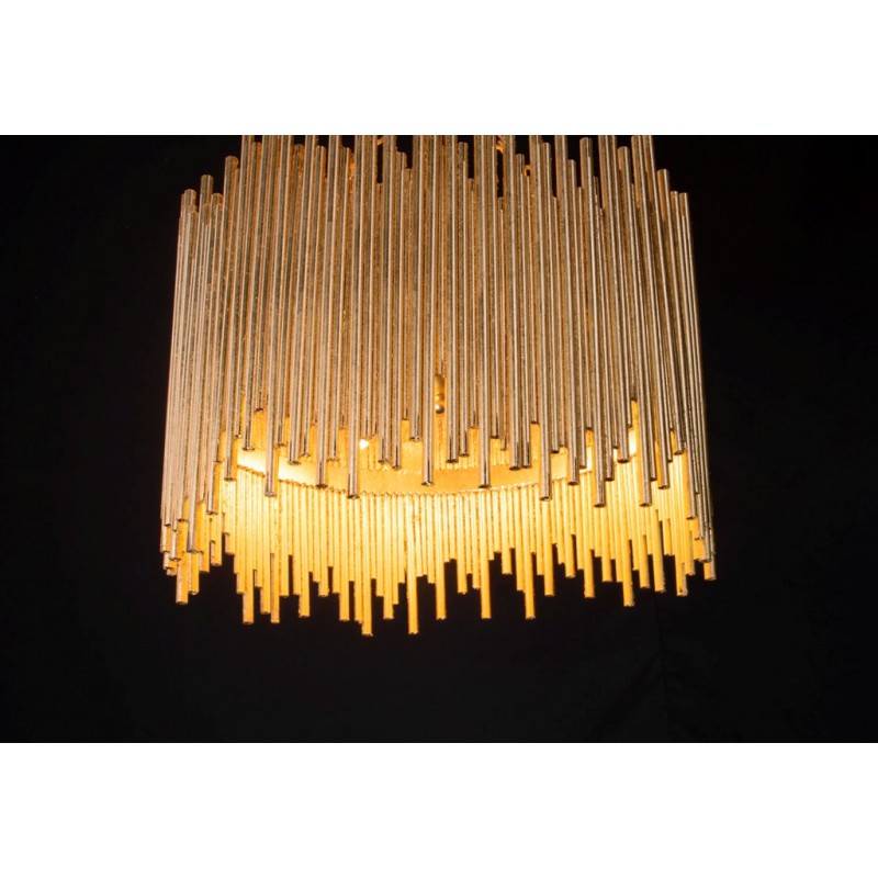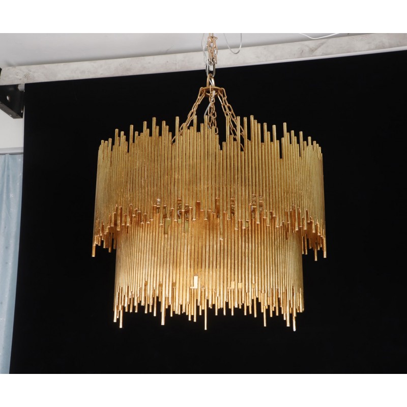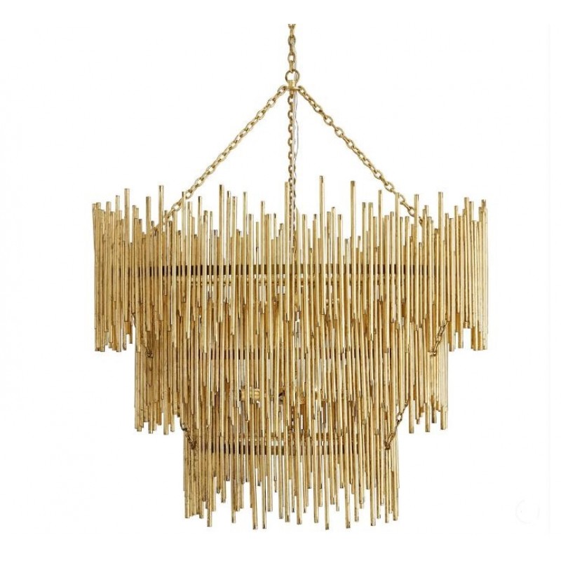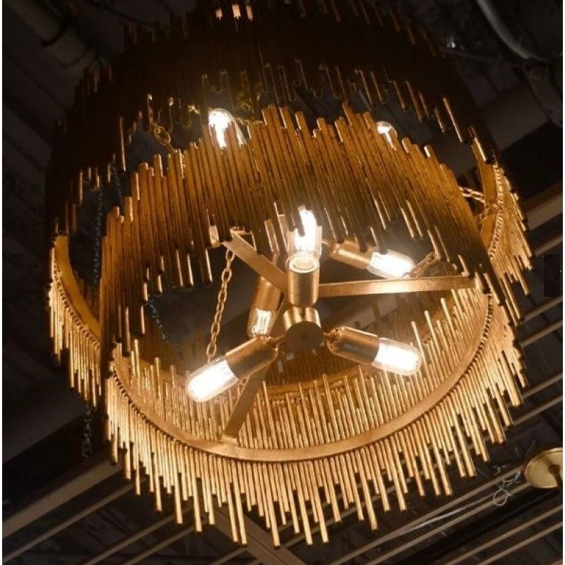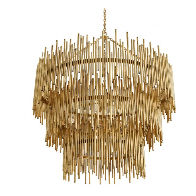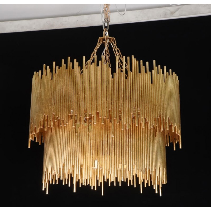 Hand-welded with iron rods, this standout chandelier adds an abundance of texture above the dining space or grand entryway. The gold-leaf finish is also hand-applied, completing its impressive artisan appeal. This unique lighting design represents the sophistication and finesse of the American jazz pianist, displaying a very luxurious feeling. Skilled artisans hand made this round chandelier in brass, covering it with a gold-plated finish, which can be customized in multiple other finishes. The result of this outstanding creation is a functional dining room chandelier with sculptural shapes. At Alan Mizrahi Lighting Design, we manufacture many highly sought after pieces. All Chandeliers can be customized by the number of lights, style, color and size to meet your specific needs.