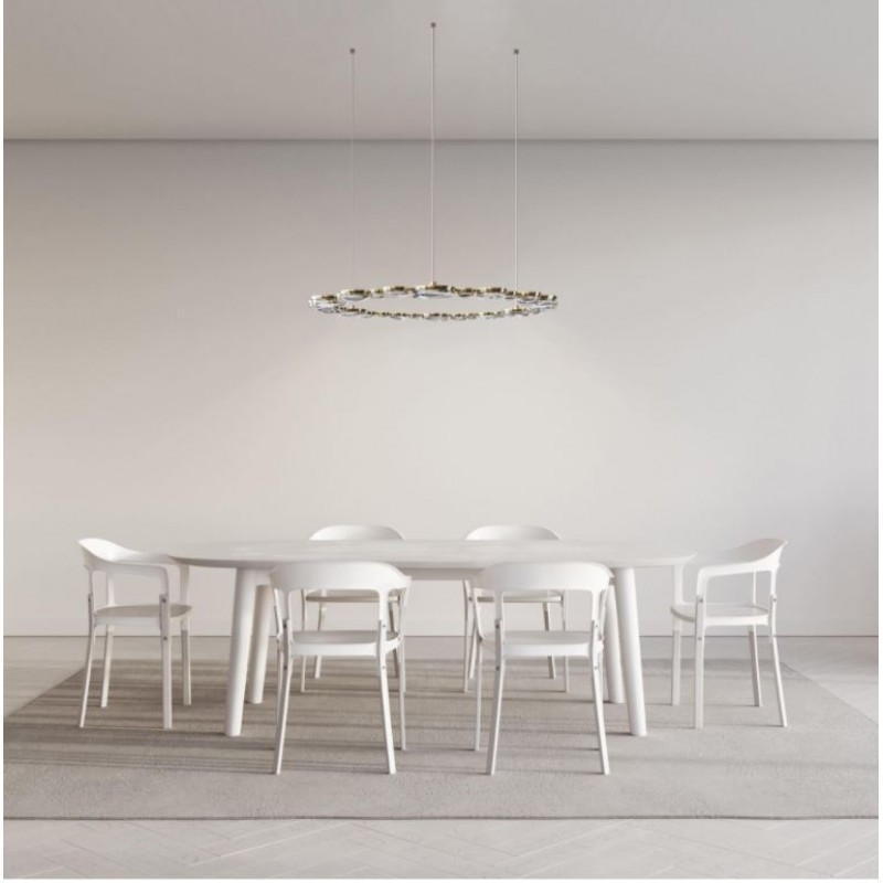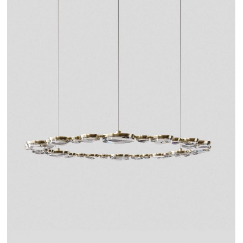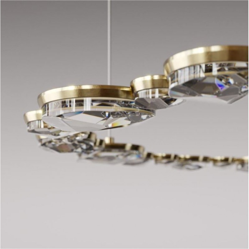 This stunning chandelier is named after a middle eastern folk tale and much like its famous character, Aladdin Circle ceiling light exudes a charming presence. Round cut diamonds perfectly aligned in unison. Sourced in Germany, this crystal glass is hand cutwm to precision and preciously enclosed within exquisitely polished metal work. Carefully calibrated and meticulously positioned LED lights create a timeless ceiling light to be treasured.