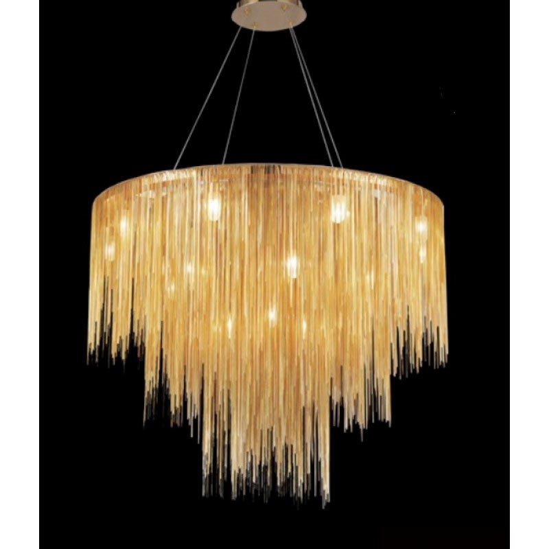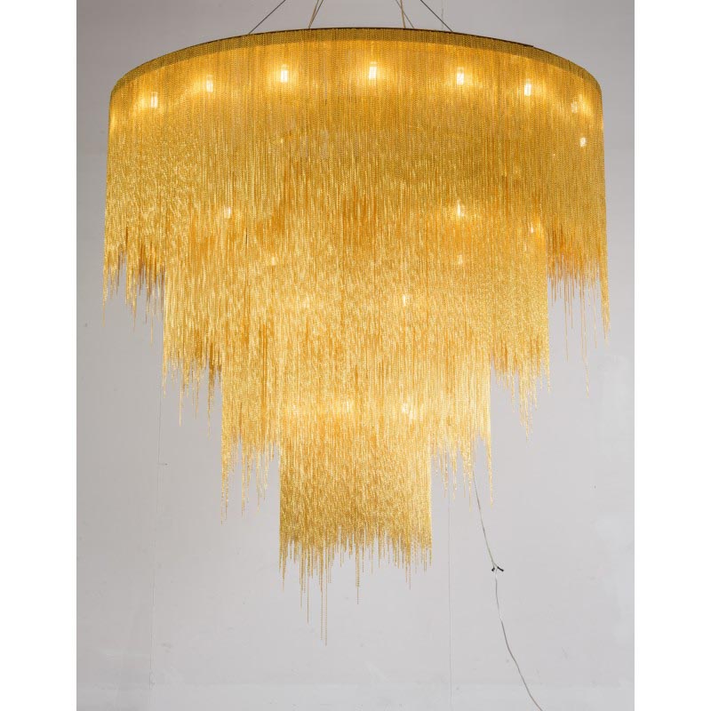 This piece will bring the drama and elegance that every space needs. This design was inspired by women’s love of jewelry and the same essential final touch that a statement jewelry piece brings any outfit, this design will do the same for your home. This fixture literally draws in your sense of touch with its soft flowing jewelry chain.