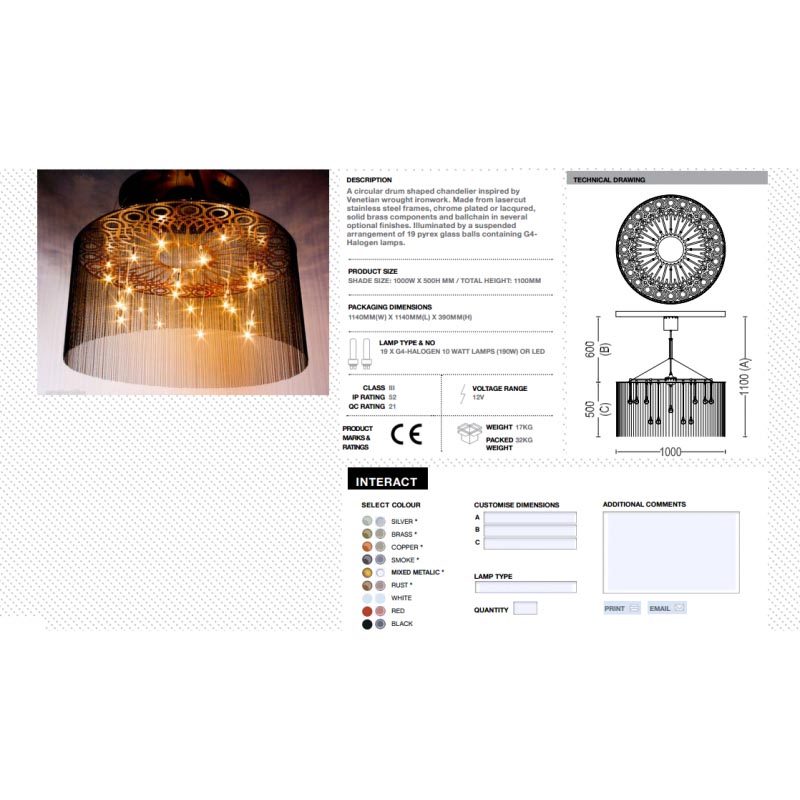 In this chic Venetian style piece, artists have fused together a marvelously simplistic and modern-style finishing touch to make this sought after piece highly desirable to customers. This "Ngoma Drum" chandelier is essentially all you need in a lighting fixture with its gorgeous glow and equally stunning finish and bulbs. Inside this ball, chain strands are a number of pyrex glass balls containing G4 halogen lamps. Its showstopping circular drum shape and long ball chains from top to bottom give it an industrial feel while delivering just as much Venetian flair with it's stunning design at the top of the fixture. It is sure to delight and bring in many compliments to your space now and in the years to come