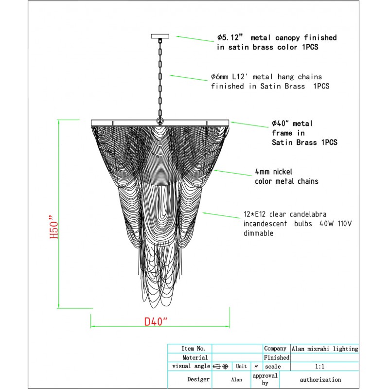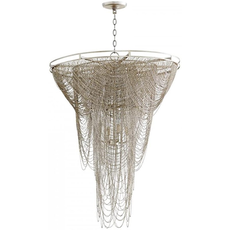 This gorgeous Metal Chain chandelier melds a fusion of industrial style with dark glamour to perfection. Any of these gorgeous metal pieces can drastically transform a space with their modern aesthetic. The proportions of the piece are beautifully balanced and cinched in just the right places. In addition, it's also adorned with only the finest (4mm) nickel strands that flow effortlessly throughout the chandelier, letting its exquisite, new-age appeal take you to another place.