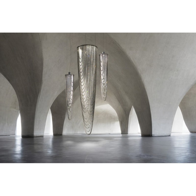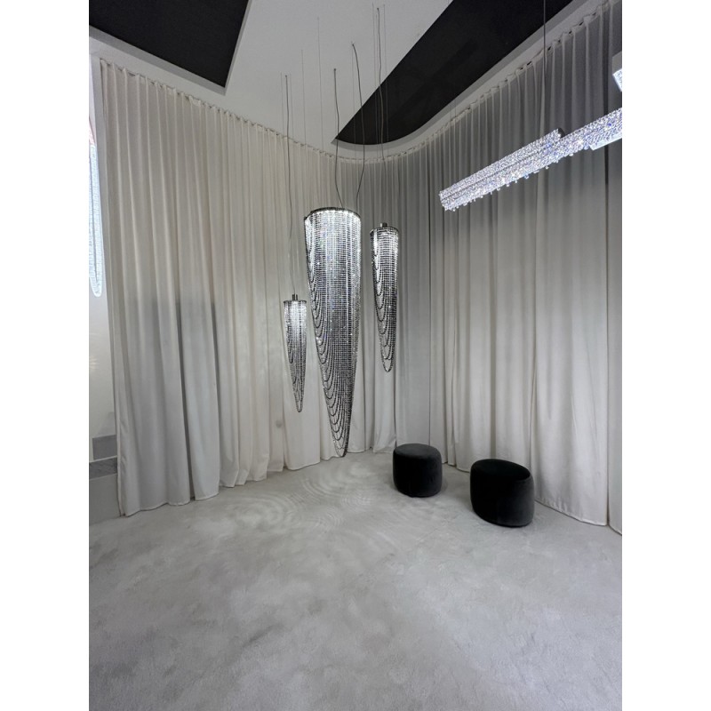 The specialty of crystal use is the play of light and shadow and the bold use of color, showing a different face from every angle. An important design element of the chandelier is its lacing technique, which uses the interplay of colorful crystal chains as shining necklaces to create a luxury piece of space jewelry. A true jewel of the space, using contrasting colors and lines, enhanced by the creative use of materials. Mirage is not only a fusion of colors, but also of generations. Through our new collection we aim to maintain a balance between modernity and tradition, through innovation and craftsmanship, simplicity and luxury. While constantly working on perfecting our products, our founding values remain unchanged: limitless artistic creation, exclusivity, and uncompromising quality. Crystal works like a prism: the higher the lead content of the glass, the better it disperses light. That’s why we use only the highest quality crystals available worldwide to assemble chandeliers.
