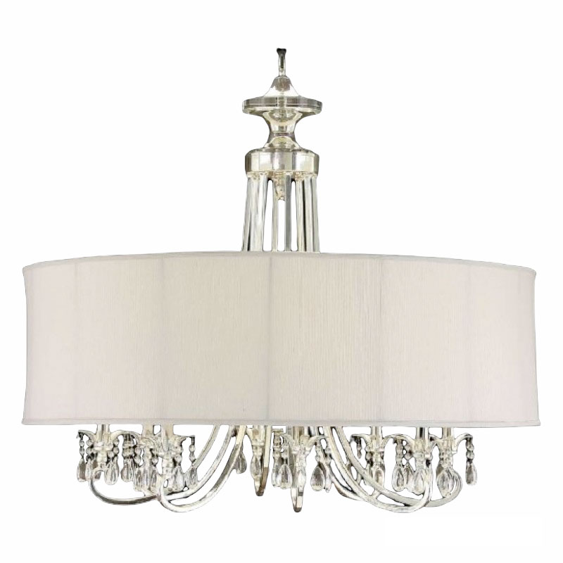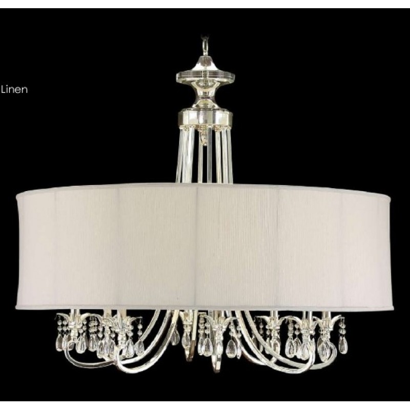 Lombard Eight-Light ChandelierShade: 40\" X 40\" X 12\", New Oyster White, LinenSilver Finish with Glass AccentsCanopy: 5\", Chain: 10'Direct Wire Only AJC-8458 21\"H X 7\"W X 7\"D Lombard One-Light Sconce (on the left) AJC-8459 21\"H X 7\"W X 7\"D Lombard One-Light Sconce. Original One of a Kind Design Chandelier. No two alike, each chandelier in this design is a one of a kind. This hanging light looks interesting from any angle, and makes nice shadows. One of the technically most particular chandeliers created. We approach this sculptural object in a contemporary, unexpected and creative way. Light and shadow interplay and exist together, there is a subtlety of using both to manipulate space and thought.