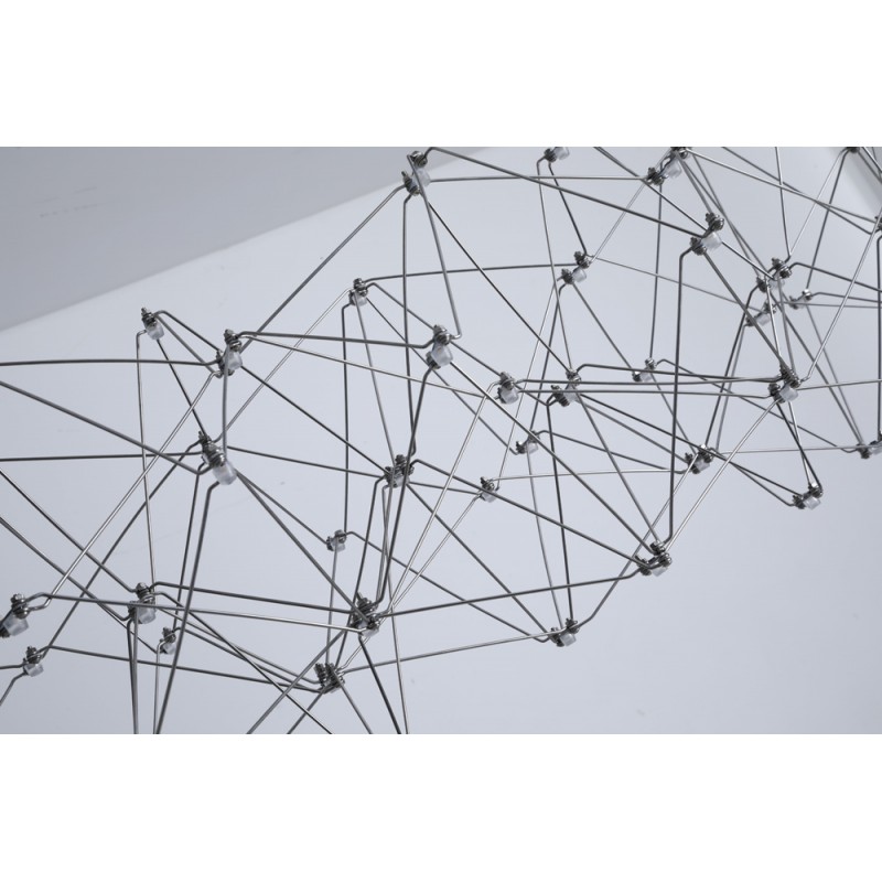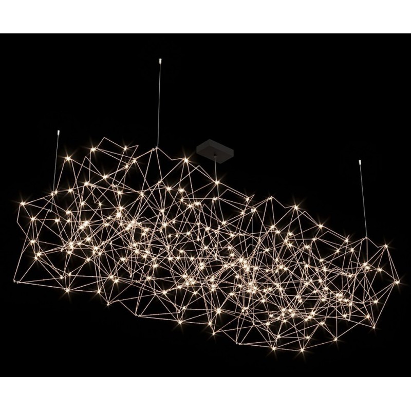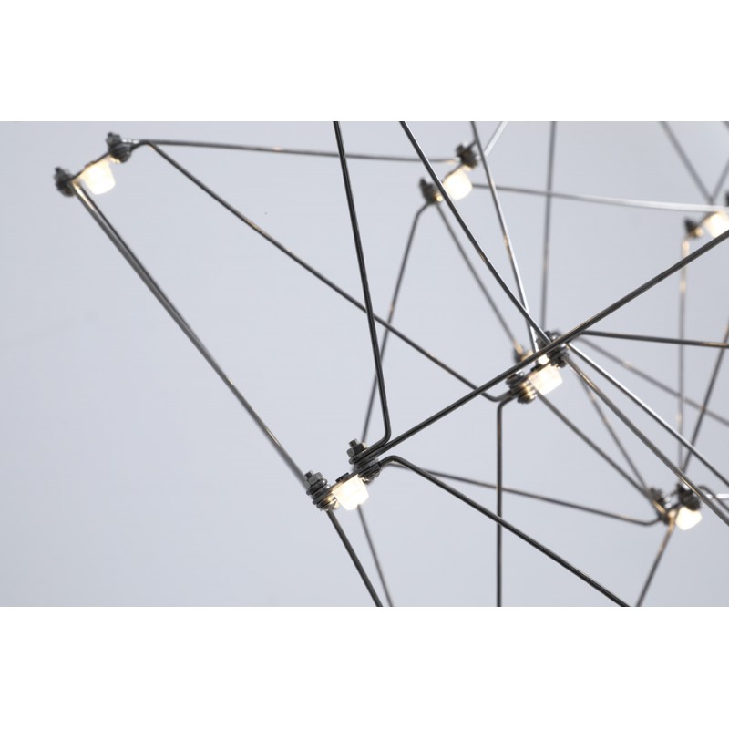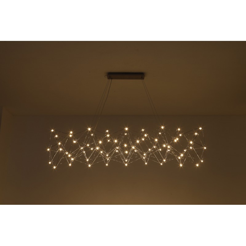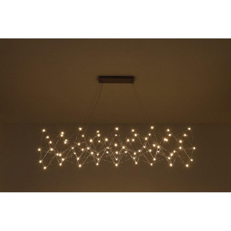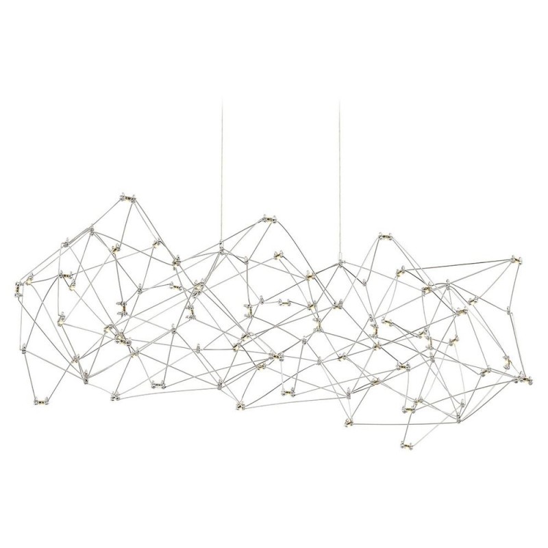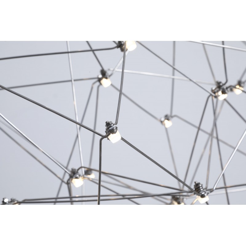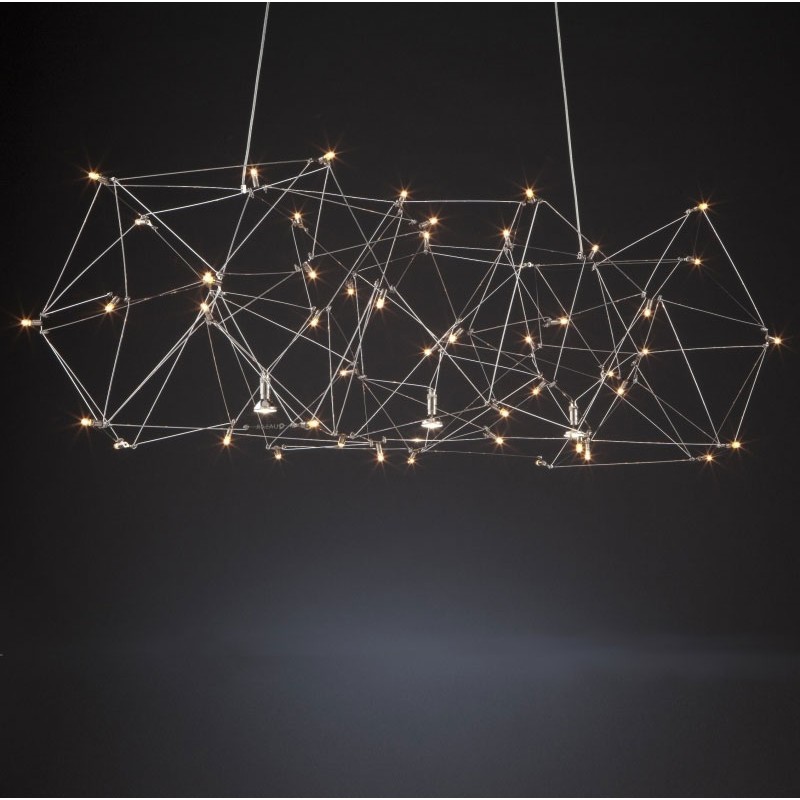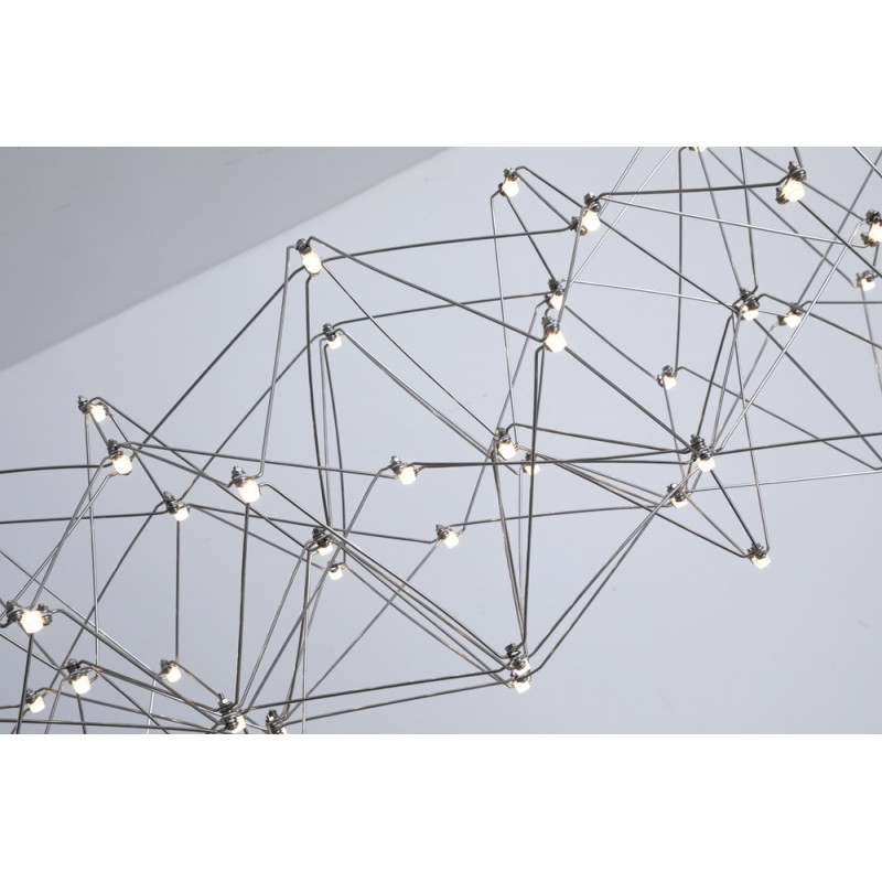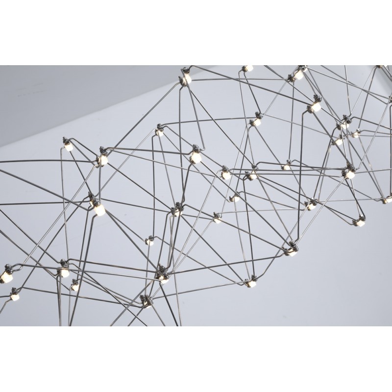 Universal resembles a celestial shape with its interwoven shafts and Satin Nickel metal that beam in all directions. Cosmos design includes grids of brass to stand alone or mesh together to illuminate wider surface areas. Brass’s status as a conducting material means no wires are needed for the tiny pinhead LEDs. All Chandeliers can be customized by the number of lights, style, color, and size to meet your specific needs. Every chandelier can also be combined with a matching table lamp and wall lamp to accomplish the best room design.