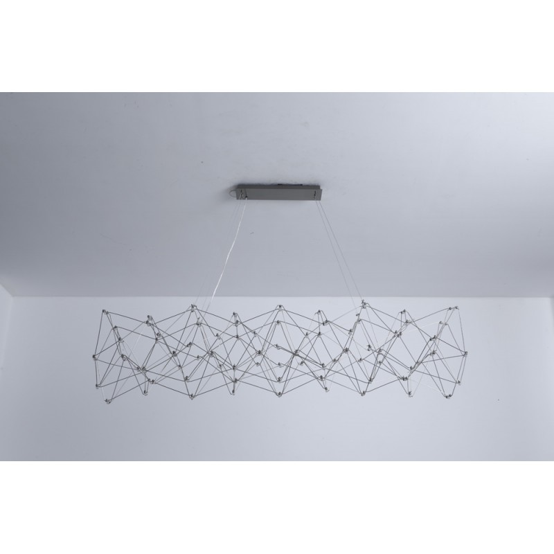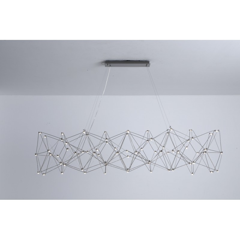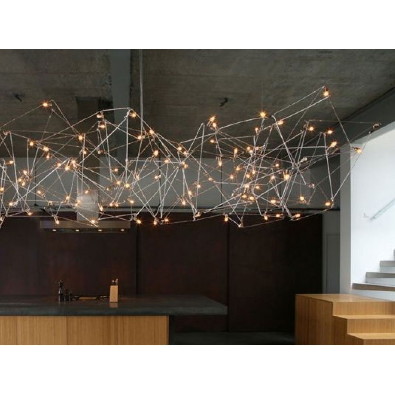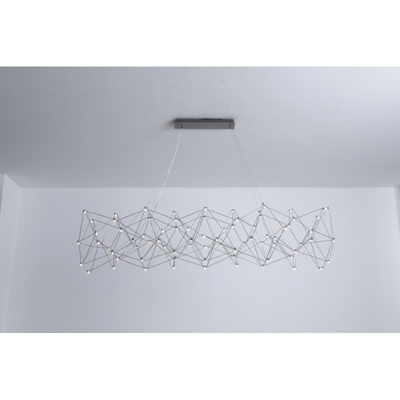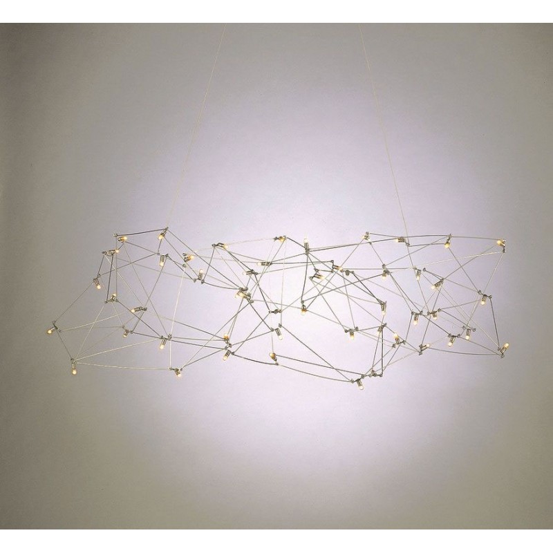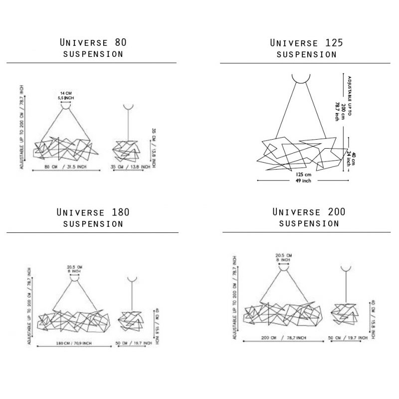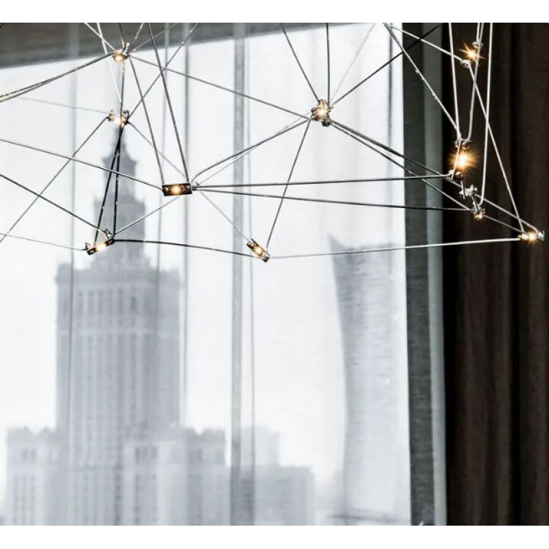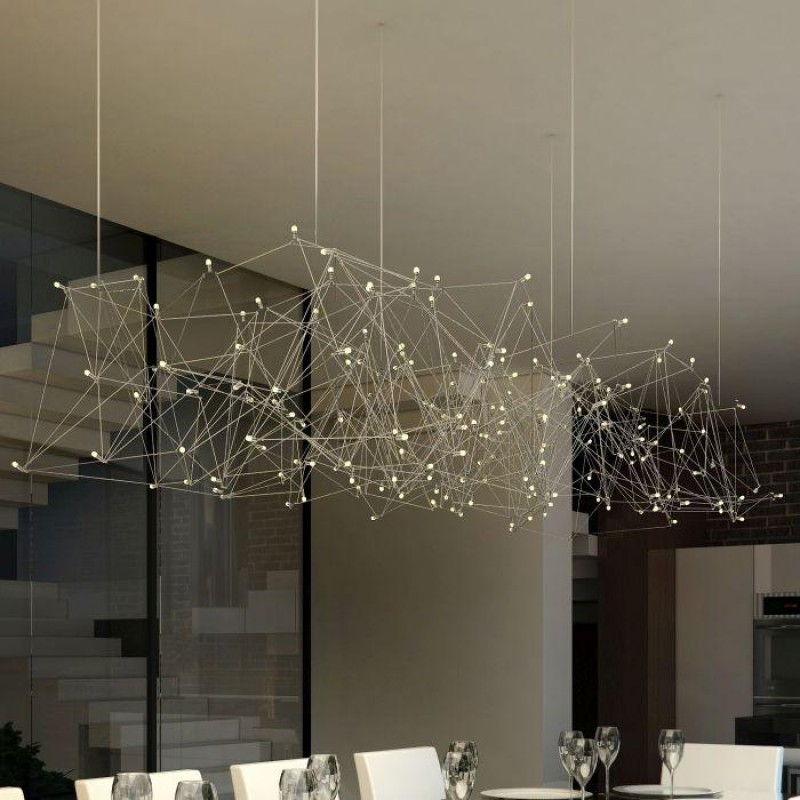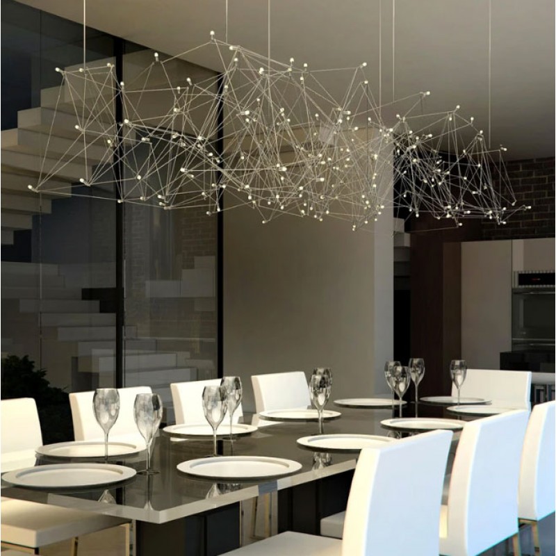 Universal resembles a celestial shape with its interwoven shafts and Satin Nickel metal that beam in all directions. Cosmos design includes grids of brass to stand alone or mesh together to illuminate wider surface areas. Brass’s status as a conducting material means no wires are needed for the tiny pinhead LEDs. All Chandeliers can be customized by the number of lights, style, color, and size to meet your specific needs. Every chandelier can also be combined with a matching table lamp and wall lamp to accomplish the best room design.