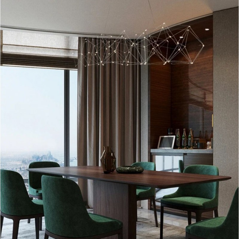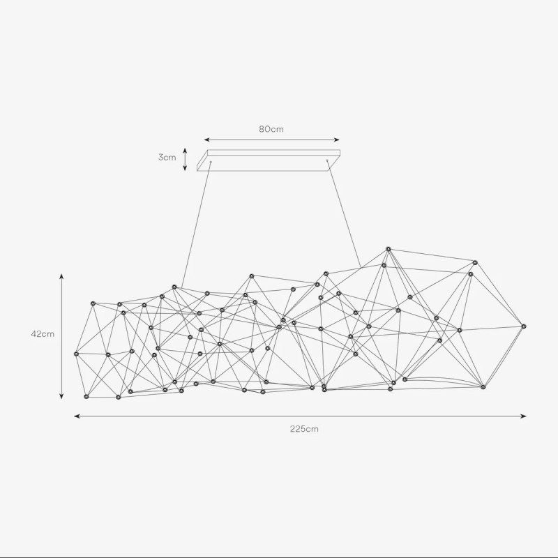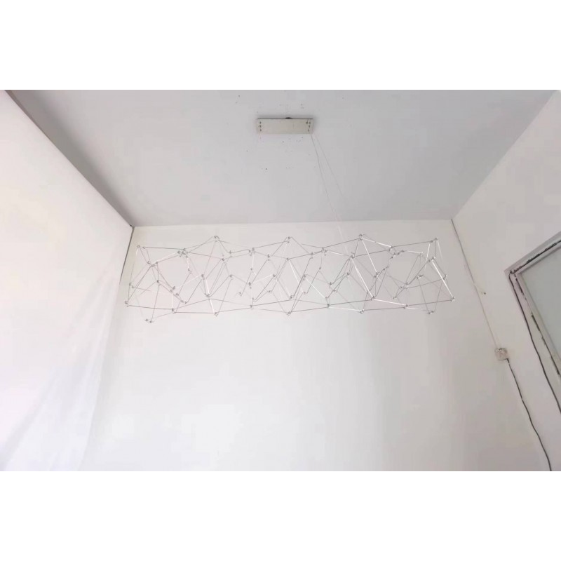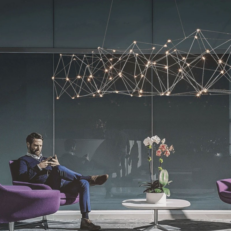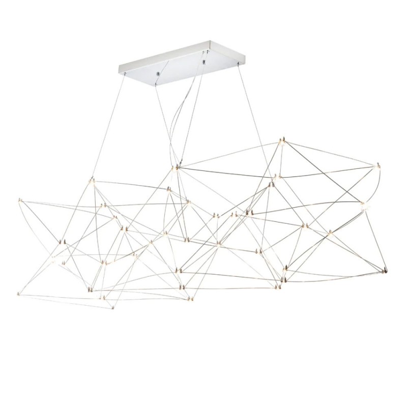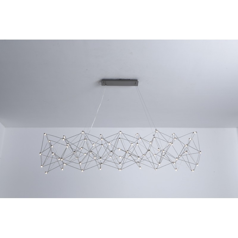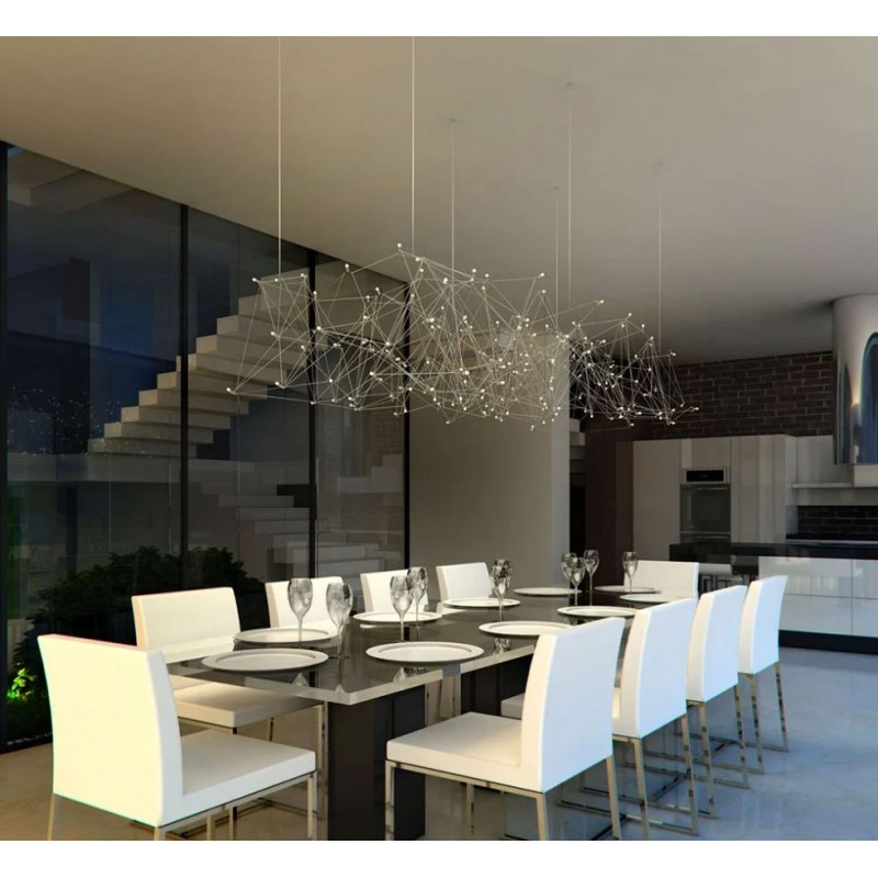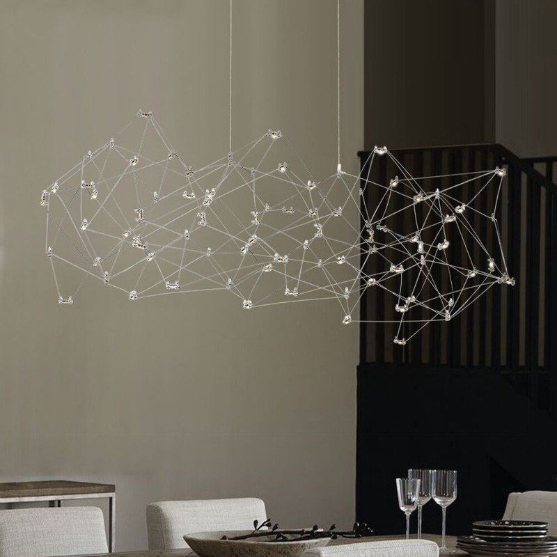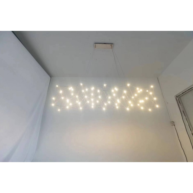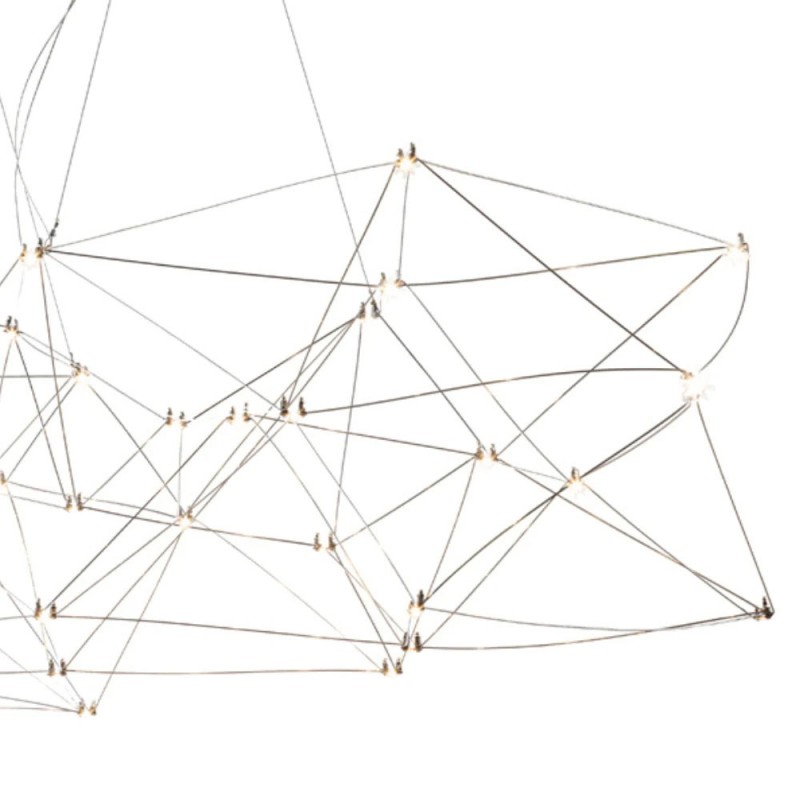 Universal resembles a celestial shape with its interwoven shafts and Satin Nickel metal that beam in all directions. Cosmos design includes grids of brass to stand alone or mesh together to illuminate wider surface areas. Brass’s status as a conducting material means no wires are needed for the tiny pinhead LEDs. All Chandeliers can be customized by the number of lights, style, color, and size to meet your specific needs. Every chandelier can also be combined with a matching table lamp and wall lamp to accomplish the best room design.