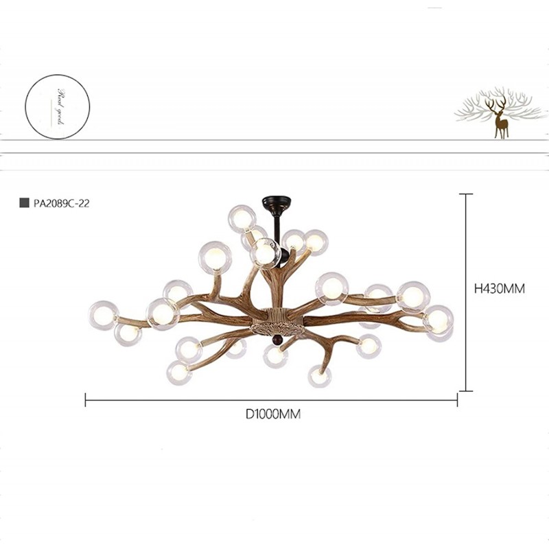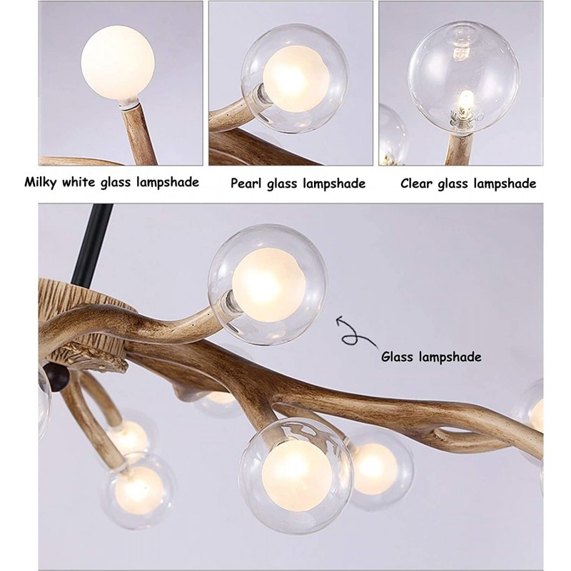 Unique lamp stand design , very artistic chandelier: the chandelier lamp stand has 22 artificial deer heads and antlers facing each direction, and each antler has a chandelier light source to create a noble cultural atmosphere for your room. The pendant lamp body is made of high-grade materials: The lamp holder is made of high-grade resin and high-quality iron, which gives a strong fine texture impact, exquisite appearance, high temperature, easy to clean. Sufficient chandelier light source: G9 LED bulb included. You can choose the bulb you like: clear glass lampshade, milky white glass lampshade, pearl glass lampshade. Meet your various decoration styles. Wide applycation: Suitable for decorating a variety of styles, post-modern american style, european style, modern style, retro style. It can be widely used in bedroom, living room, aisle, balcony, home restaurants, kitchen, bars etc. The pendant lamp is medium in size and easy to install: The vertical height of the lamp body is about 17 inches and the diameter is 39.37 inch. If you still have installation problems, you can contact us in the Amazon email message, and we will reply to you within 24 hours