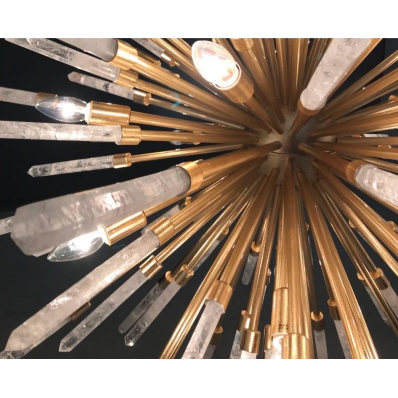 Original one of a kind chandelier. No two alike, each chandelier created from this design is a one of a kind. This hanging light looks interesting from every angle, and creates enticing shadows. One of the most technical chandeliers created. We approach this sculptural object in a contemporary, unexpected and creative way. Light and shadow interplay while existing harmoniously, using both to manipulate space and thought.