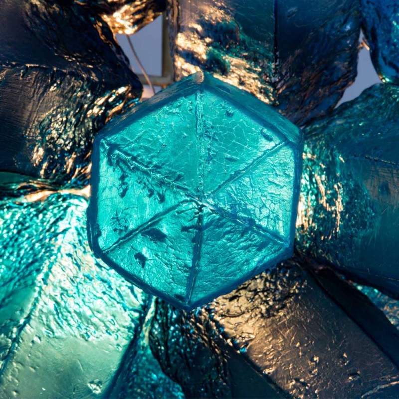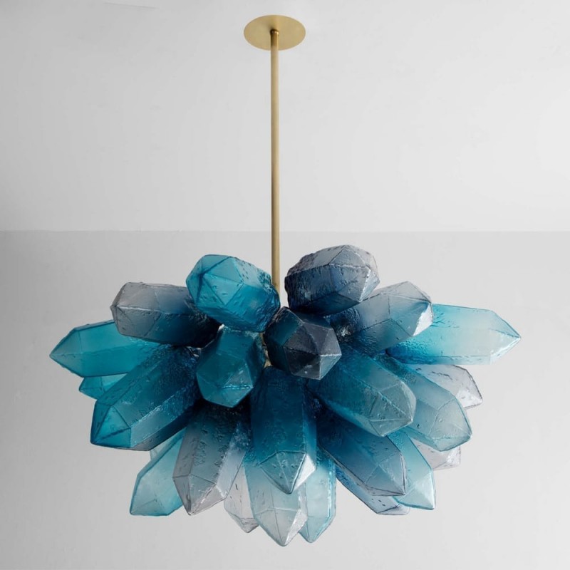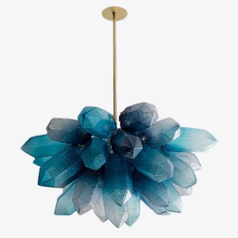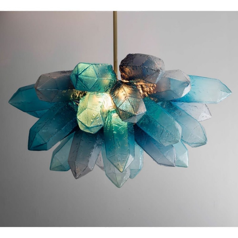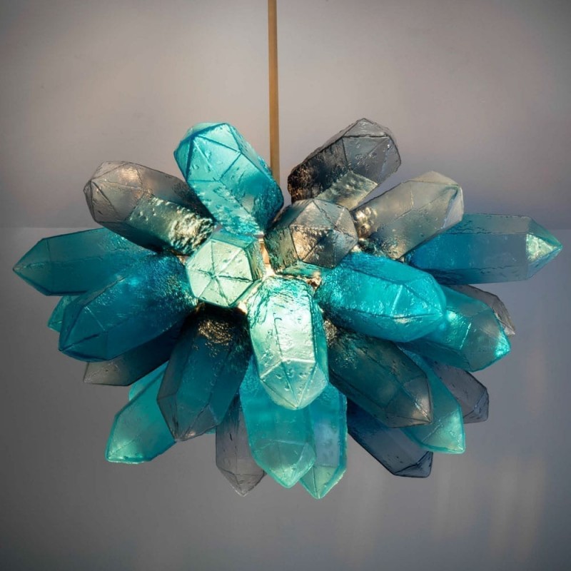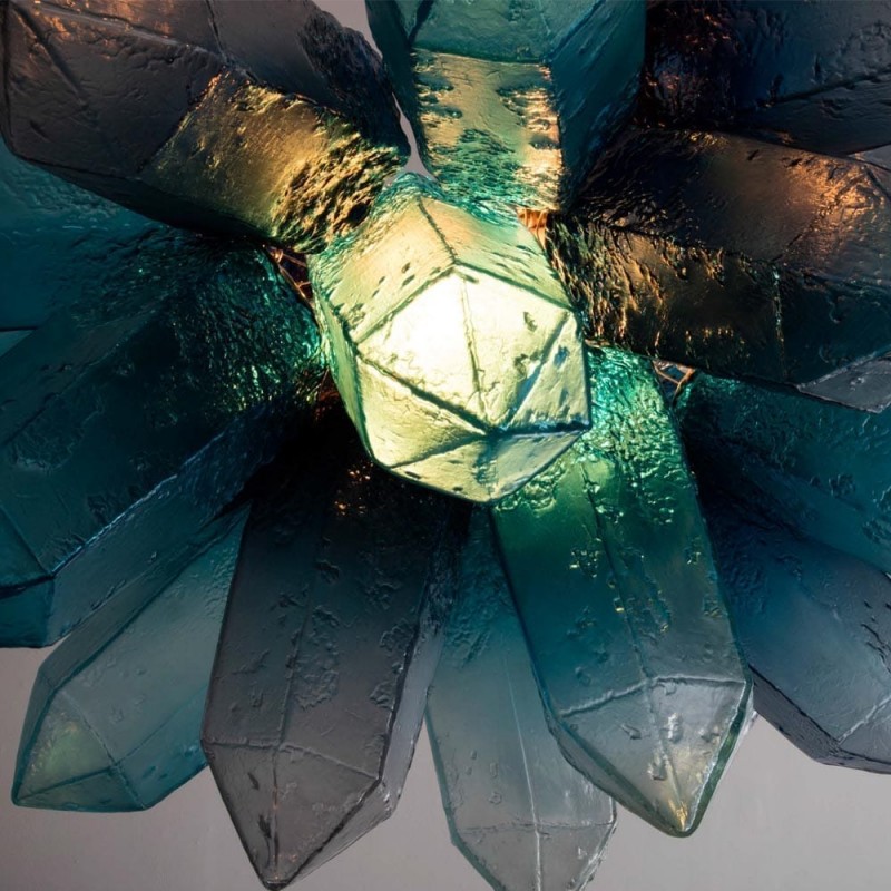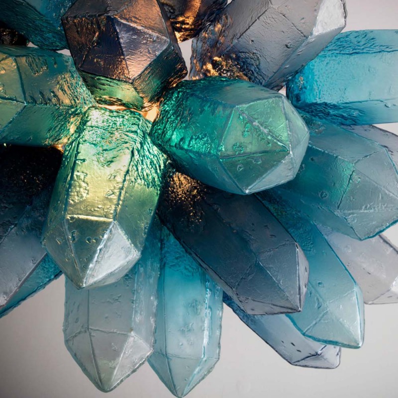 Jeff Zimmerman drew his inspiration for this piece after coming across a photo of the Cave of the Crystals (Naica, Mexico). He also started collecting minerals, which were part of his research. This hand-blown piece mimics the forms of the crystals found in the Cave. It is also a part of a new series of glass sculptures based on the linear geometry found in geologic entities; it is presented at The Invisible Collection’s showroom in London and R & Company in New York.