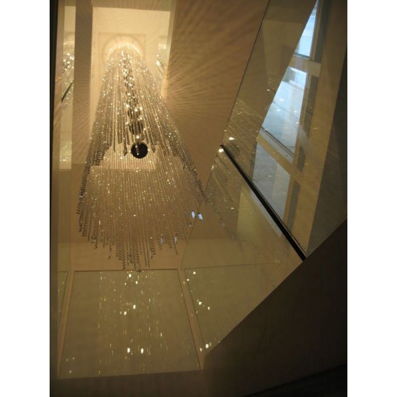 Swarovski style Flush pendant made with sparkling crystal wires, available in bespoke size. The key to an elegant, opulent, bespoke design is understanding the aspirations of the client, the relevance of location and through maximizing the potential of existing elements of the space.