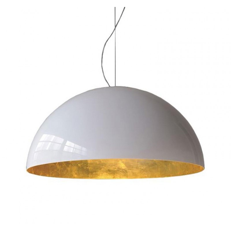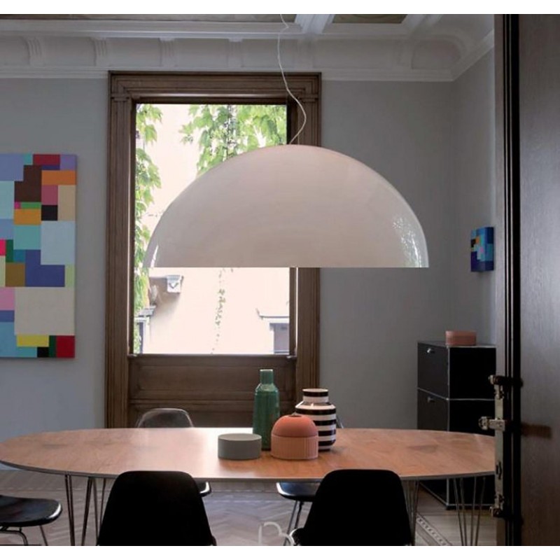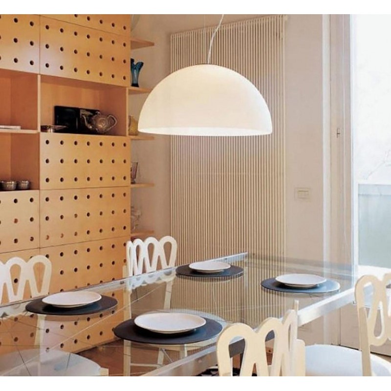 Sonora Suspension lamp by Vico Magistretti for Oluce. The geometry of this lamp represents the designer's main source of inspiration, simplification. Sonora, created in 1976, available in several materials and sizes, is one of the symbols of this creative path and it has remained, for the entirety of its 40+ years of existence, one of the most appreciated lamps not only by the public but also by Magistretti himself.