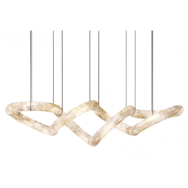 INFINITY 16 is the continuation of versions 8 and 12 from the same collection, which are based on symmetry and a circular form. Comprised of four, large back-lit alabaster loops, INFINITY 16 floats on a horizontal axis in a dynamic and structured linear flow.
