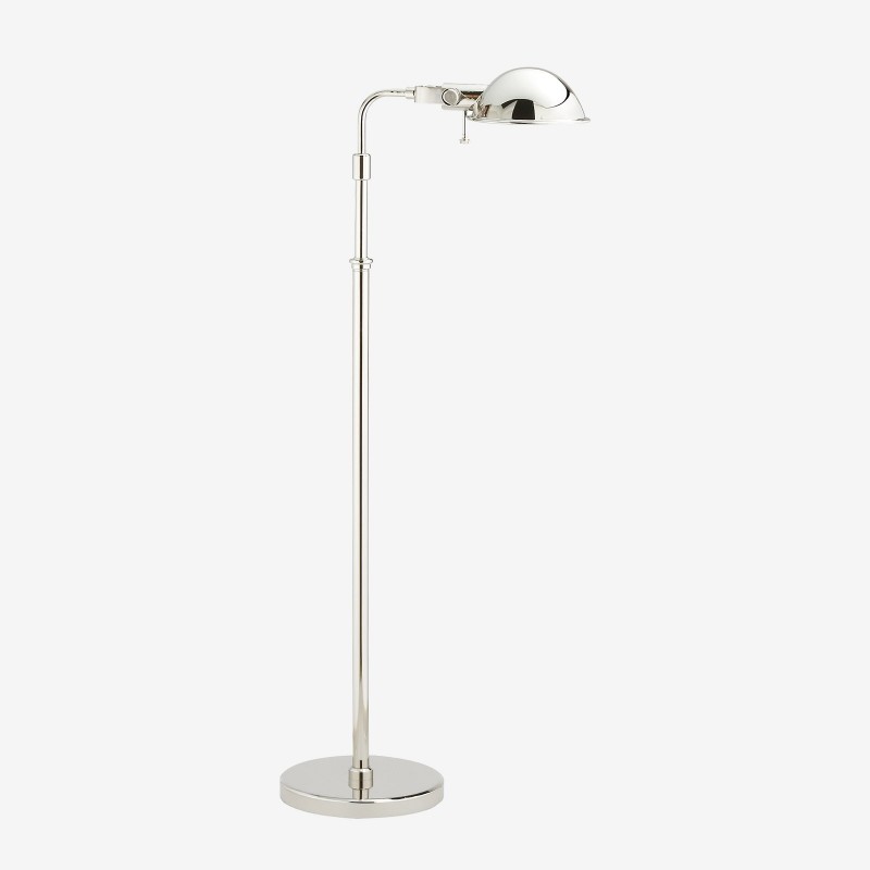 The Ralph Lauren Home Fairfield Pharmacy Floor Lamp evokes a classic sensibility through its streamlined form and minimalist silhouette. Stylish yet refined, the petite dome shade casts a vivid downward glow that creates well-lit spaces in the home or office. The slim base can be adjusted to the desired height.