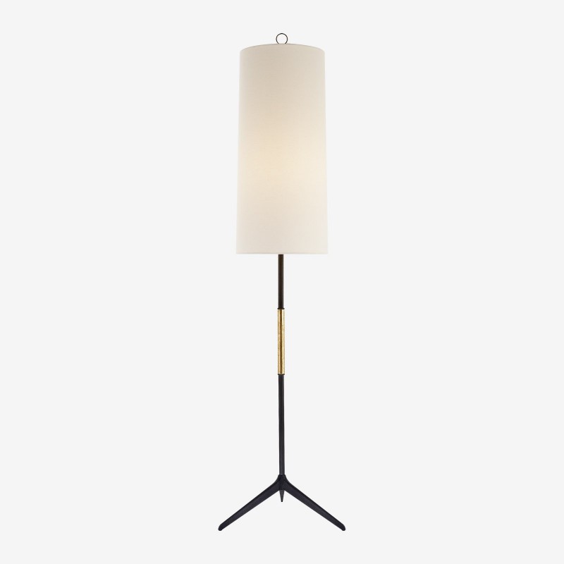 The Frankfort Floor Lamp is another beauty by AERIN. Classic, with a strong, modern base, Frankfort fits seamlessly into any design scape. Long, clean lines and a streamlined silhouette make it an ideal accent piece. Available in Aged Iron with Gilded Accents or in Hand-Rubbed Antique Brass with Mahogany Accents, it's finished beautifully with a slender cylindrical Linen Shade.