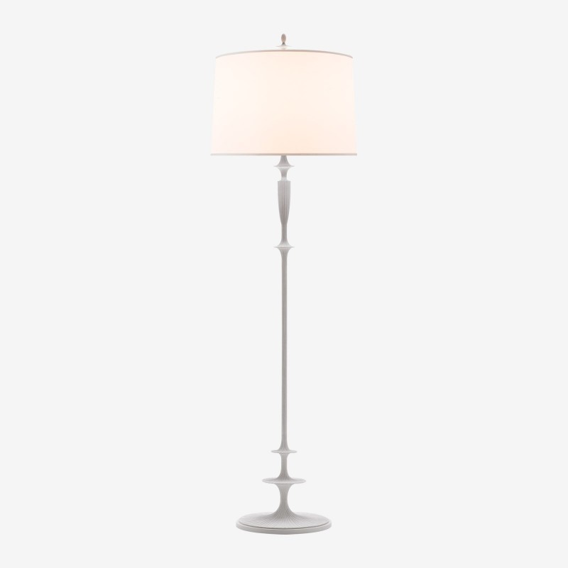 Utterly charming and sophisticated, the Lotus Floor Lamp makes a subtle statement with intricate, textural detailing that catches the eye and brings a certain calm to any space. Topped off with an elegant Silk Shade, the Lotus brings a softness that makes it perfect mood lighting addition to the living room or bedroom.