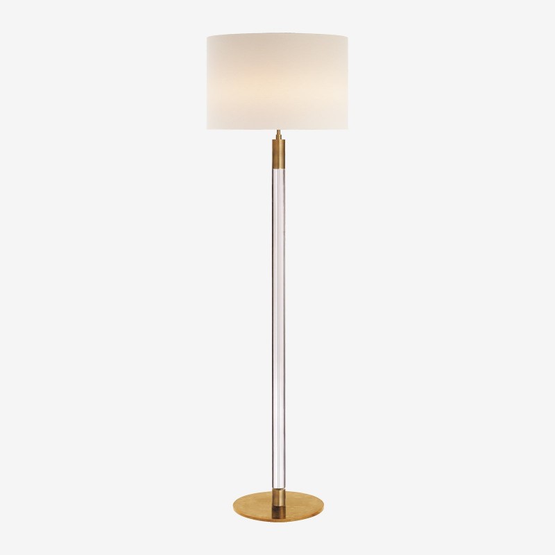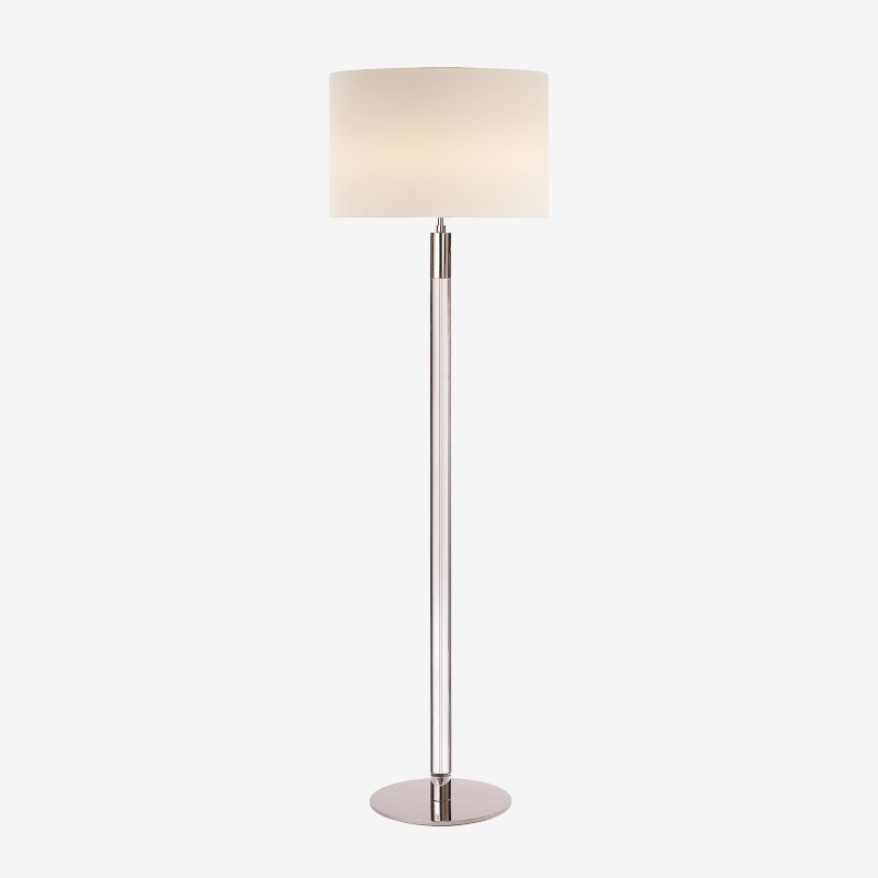 Simply elegant with a hint of Art Deco, the clean silhouette and clear crystal stand make the Riga Floor Lamp with Linen Shade a timeless addition to any space.