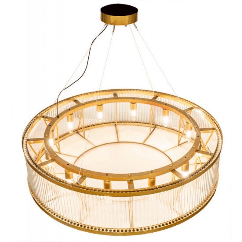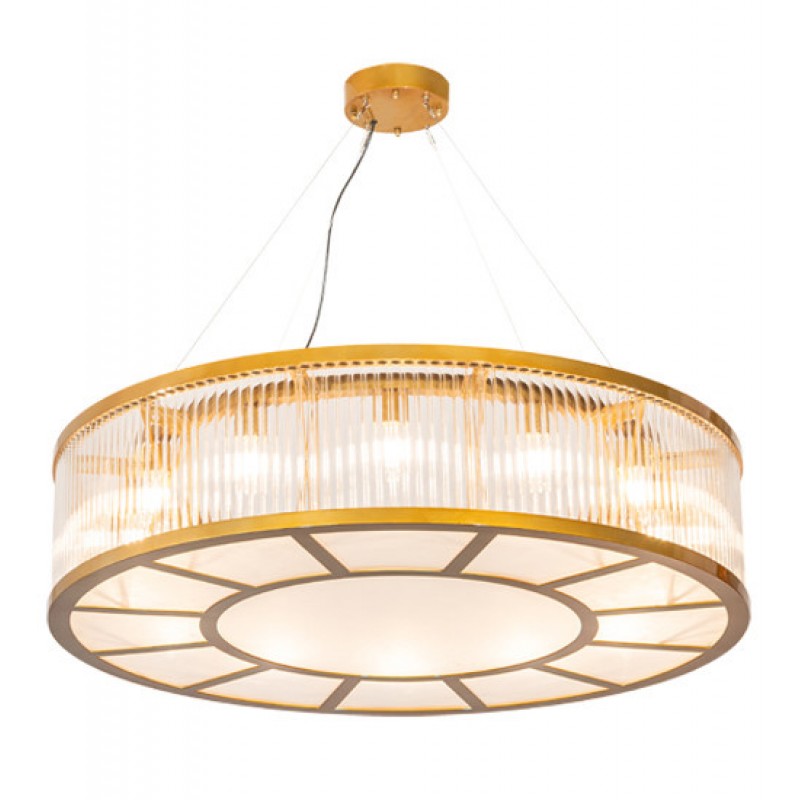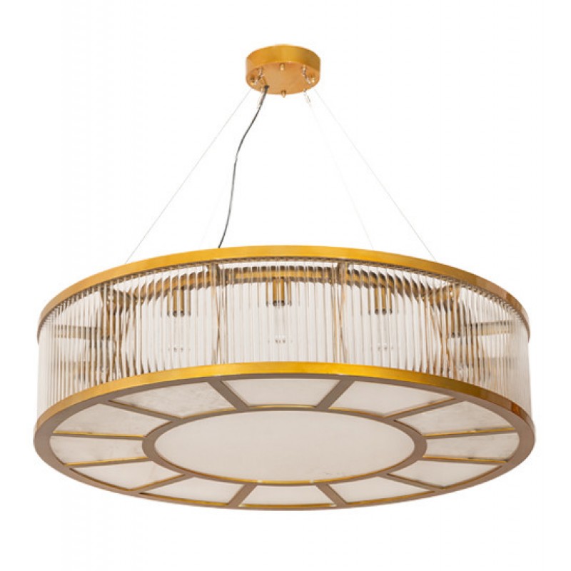 Add drama and sophistication paired with distinctive lighting and quality. Marquee is a unique pendant featuring a fluted Crystal Idalight lens which is complemented with a Contrail Mist Idalight bottom diffuser design inspired by the Sun. The hardware is offered in a Matte Buttered Brass finish. Handcrafted by highly skilled artisans in our 180,000 manufacturing facility in Yorkville, New York. Available in custom sizes and finishes. UL and cUL listed for dry and damp locations.