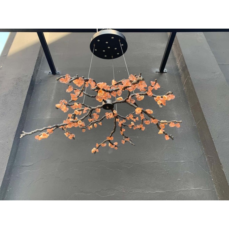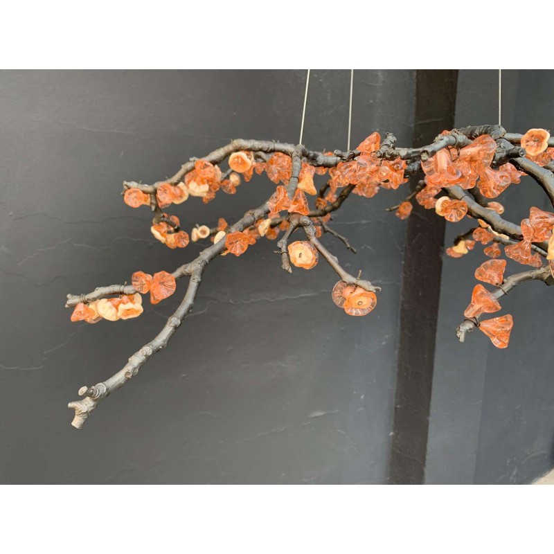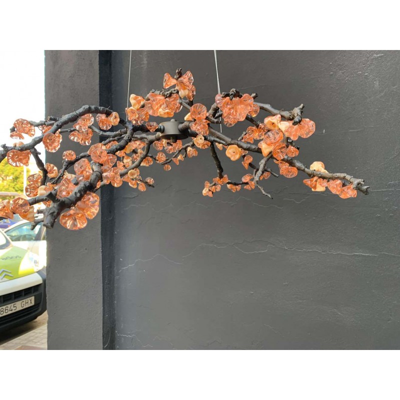 21st century sculpture almond three-pendant lamp in cast brass and glass Pendant lamp Handmade. It created with lost wax technique reproducing an almond three. Exclusive artwork to illuminate every space. The sculptor, from the beginning the evolution of his work has led him to increase the scale and character of his projects to overcome the galleries and start a dialogue with the urban space, interior design and decoration. Author’s sculpture, applied art, exclusive artwork, luxury pieces. Thanks to our continuous R & D, we have become specialists in the reproduction of organic matter in bronze. With the lost wax technique, we can reproduce high quality accurate objects. The new natural organic textures applied to unique projects, can be adapted to art and applied to projects of any measure or design as a decorate and personalized space. At present our experience allows us to deal with projects of any proportion and work with architects, engineers, interior designers and decorators. Our technical department helps you develop your project. A Studio of over 2,000 m2 and a team of professional people holds everything you need to turn the idea into matter.