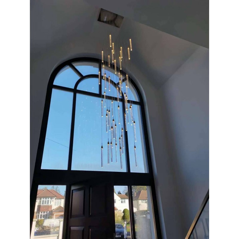 Original One of a Kind Design Chandelier. No two alike, each chandelier in this design is a one of a kind. This hanging light looks interesting from any angle, and makes nice shadows. One of the technically most particular chandeliers created. We approach this sculptural object in a contemporary, unexpected and creative way. Light and shadow interplay and exist together, there is a subtlety of using both to manipulate space and thought.