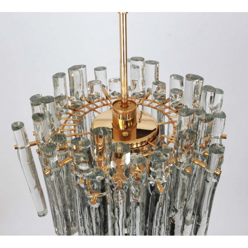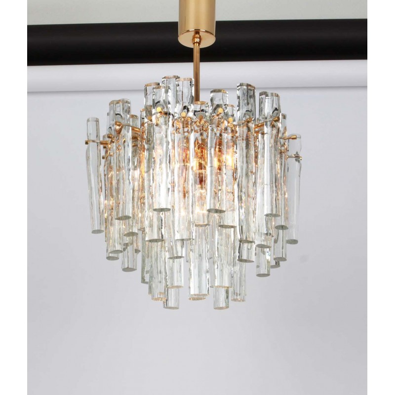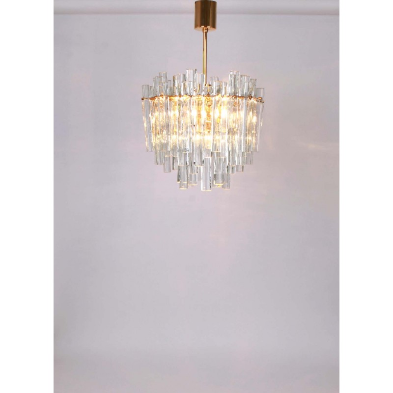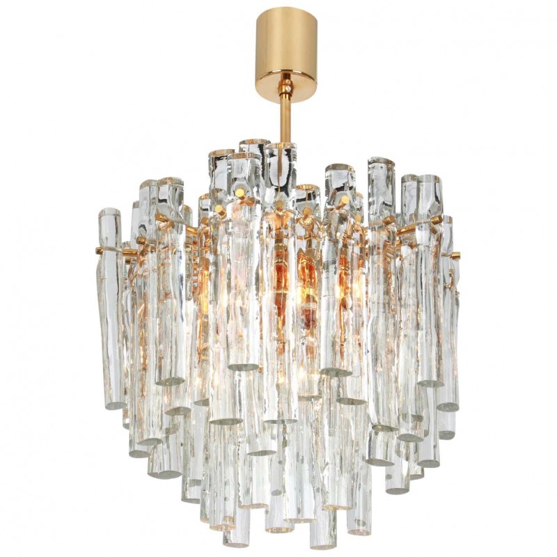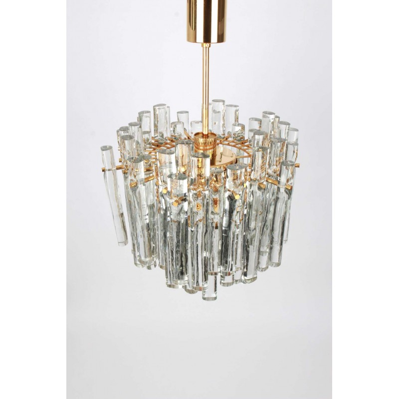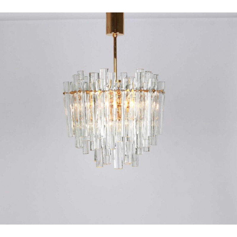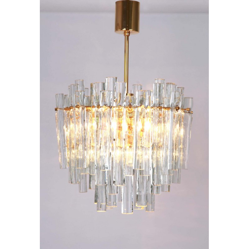 A stunning chandelier by Kinkeldey, Germany, manufactured in circa 1970-1979. A handmade and high-quality piece. The ceiling fixture and the frame are made of brass and a ring with lots of facetted crystal glass elements. Because our lighting is made by a workforce that still relies on traditional working methods, each product is unique and carries with it the sensitivity of the artisan. Attract attention, provoke emotion to what the imagination with games of light and matter, such as the ambition and the creative spark of existing elements of the space.