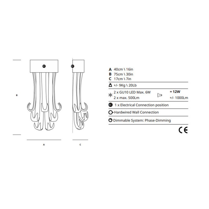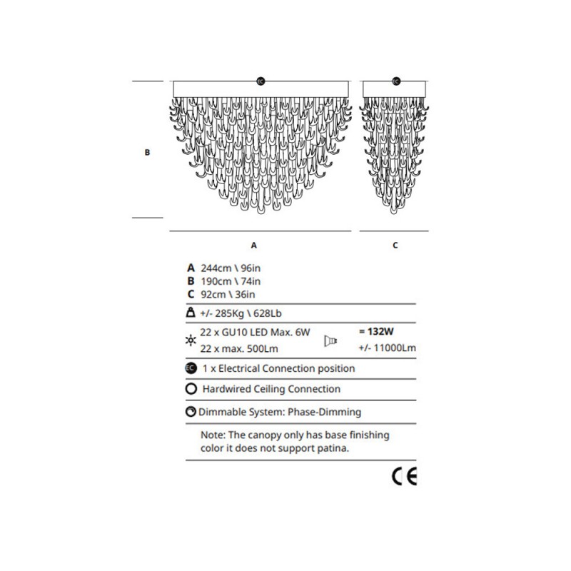 Bulbs: 22xGU10 LED Max. 6W
