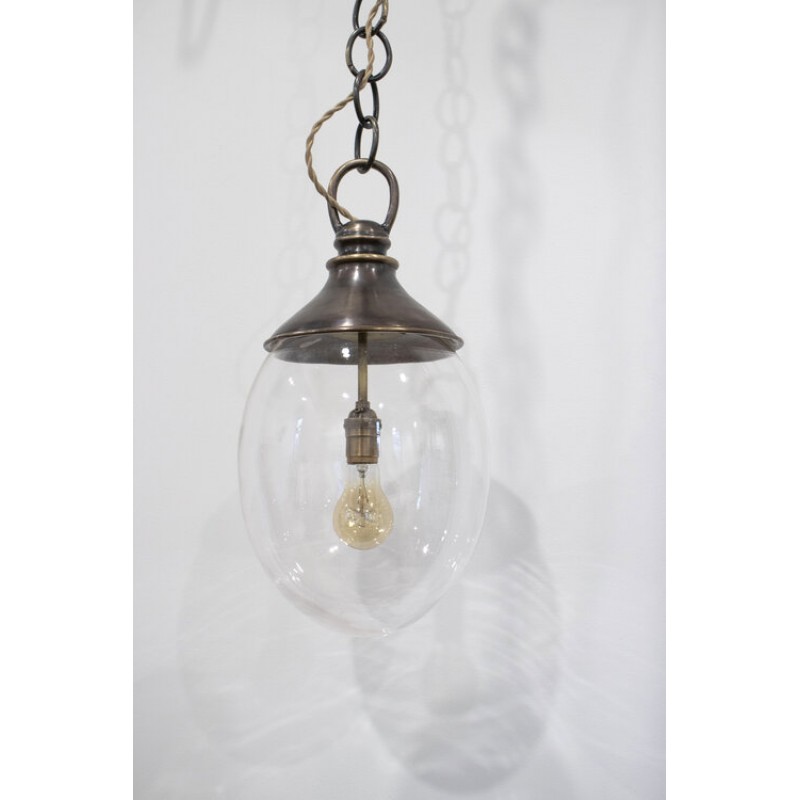 Materials: Cast Bronze, Glass Shade, and Brass Chain
