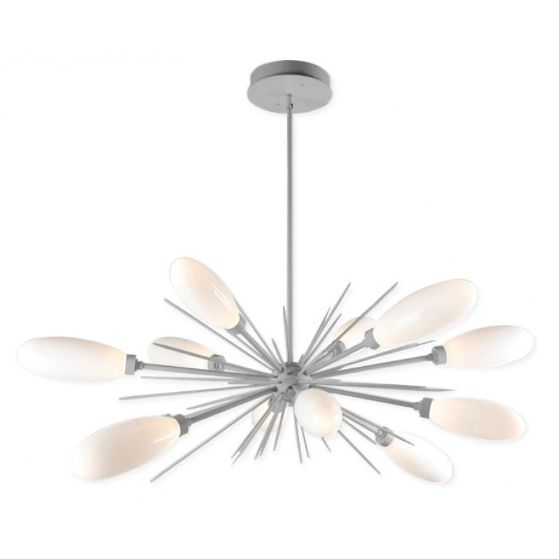 Lustrous white buds of LED-lit artisan blown glass offer a playful reinterpretation of mid-century style in this 50" W linear starburst design.