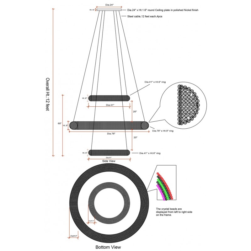 This chandelier features an array of high-quality crystal laid out “Full Crystal Pave” methods. Its simplistic layout and beautiful contemporary balance, truly something to cherish with this piece. All the above (and more) are the reasons you will have many second glances, and even more compliments on this piece wherever it's placed. All Chandeliers can be customized by a number of lights, style, color and size to meet your specific needs. Every chandelier can also be combined with a matching table lamp and wall lamp to accomplish the best room design. Our company provides collections that can make all your project dreams come true….