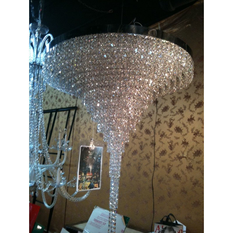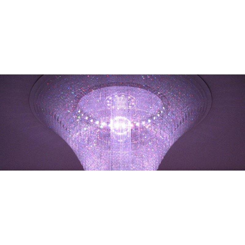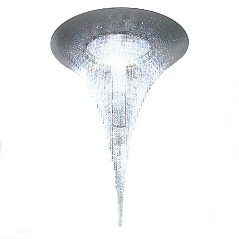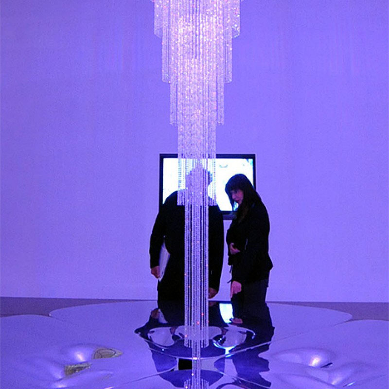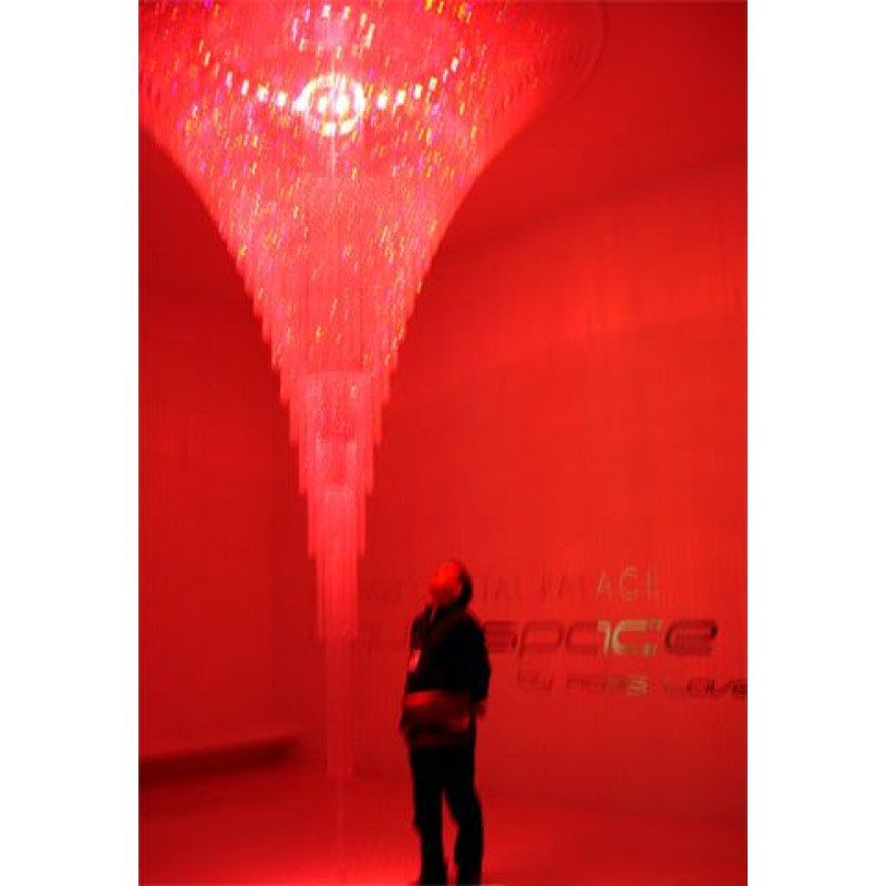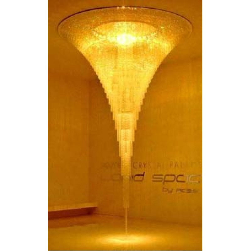 This Outstanding Liquid Space consists of 250,000 crystals beats. Designed to melts through the ceiling cascading down, milled from solid blocks of aluminium. This chandelier is lit by a three customized, remote controlled RGB-LED lighting systems and has an automated lifting to rise the bottom part to liberate space. this piece will provide an encompassing warming aura with its welcoming glow. Many decades of research and experimentation has led to the development of many exquisite crystal droplets. At Alan Mizrahi Lighting Design, we supply and manufacturer many highly sought after designer pieces, All Chandelier can be customized by number of lights, style, color and size to meet your specific needs. Every chandelier can also be combined with a matching table lamp and wall lamp to accomplish the best room design. Our company provide collections that can make all your project dreams come true.