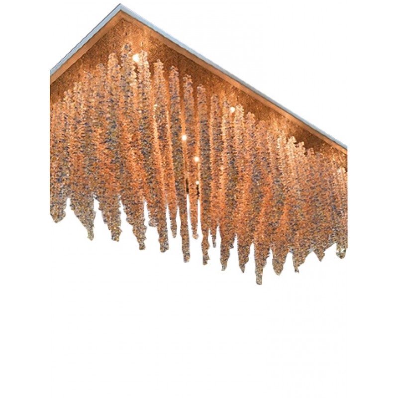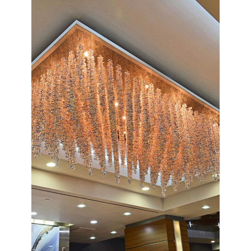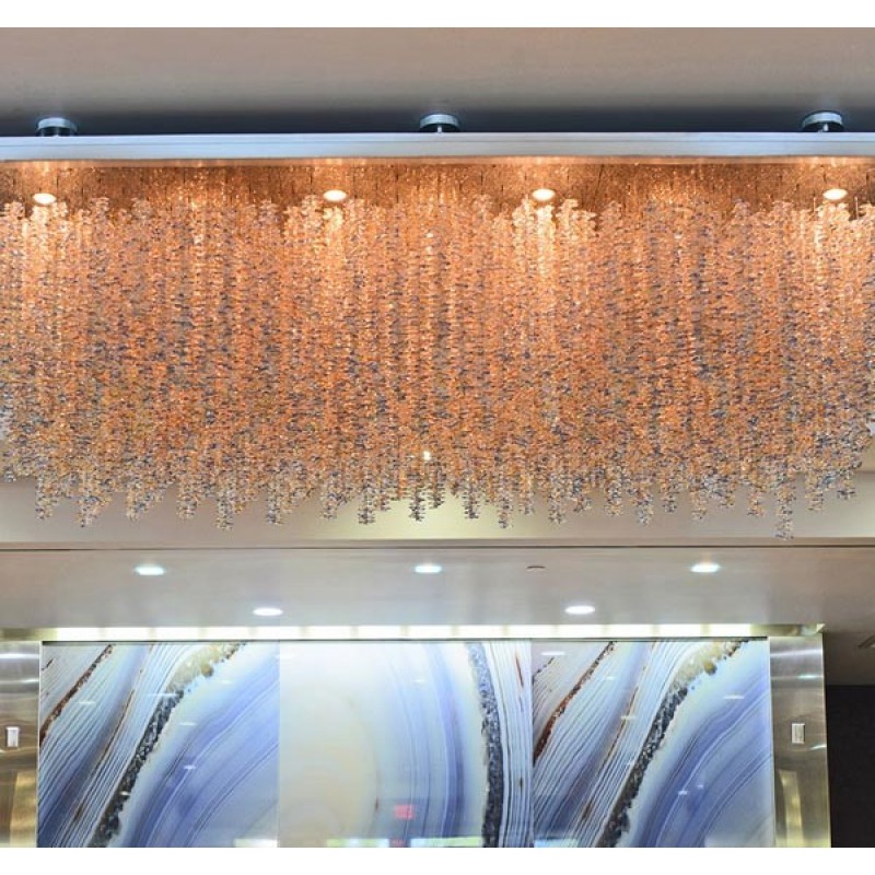 Make a grand statement in your dining room or eat-in kitchen with this elegant ten-light semi-flush mount chandelier! This design lends a pop of glam appeal to those spaces, with its array of hanging cast Nuggets in ombre Hues with hand finishes satin Chrome. Having created custom chandeliers for over three decades, we specialize in bringing lighting concepts into reality, whether your inspiration comes from a rough sketch, an existing chandelier, our original concepts, or even your own creative imagination. Large or small, our team can meet the challenge.