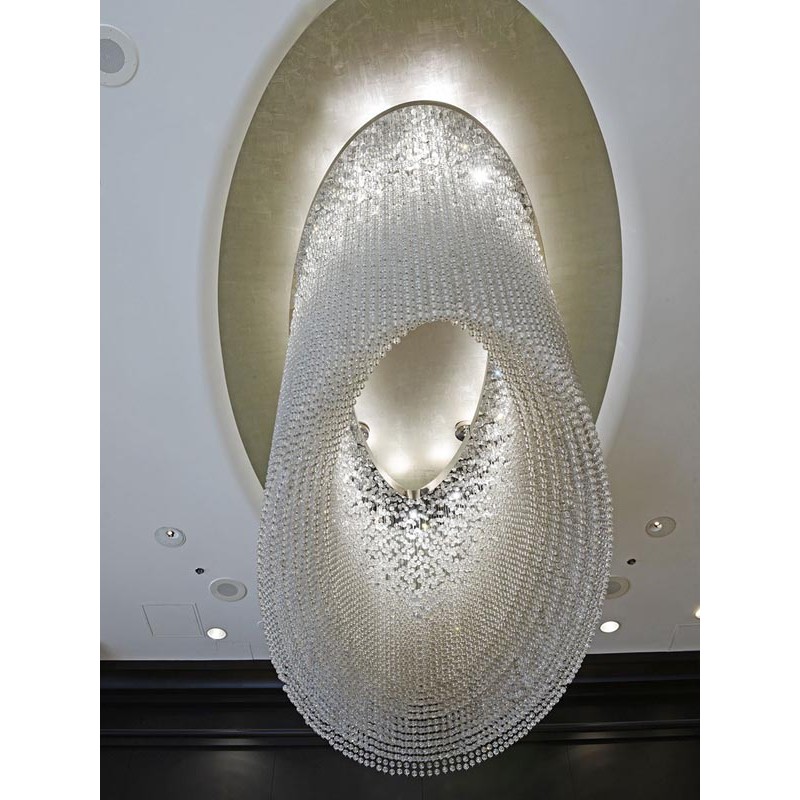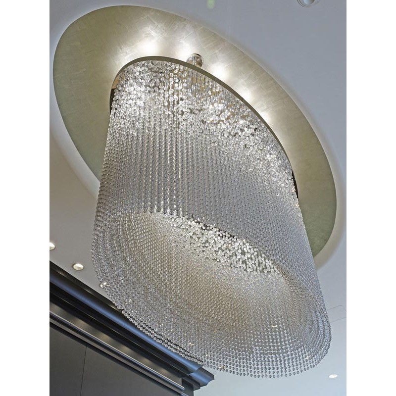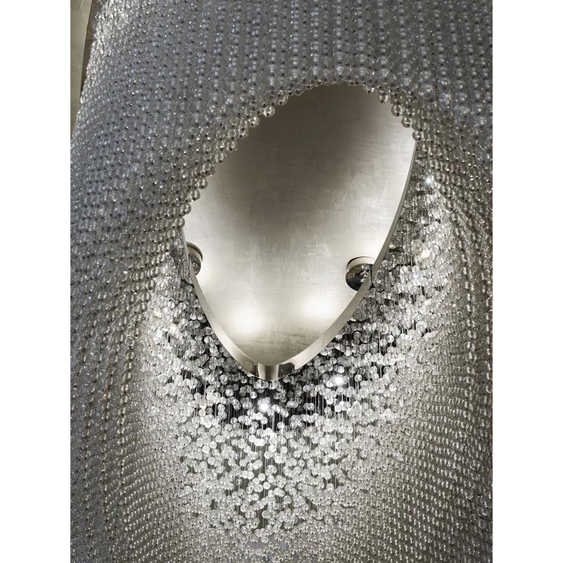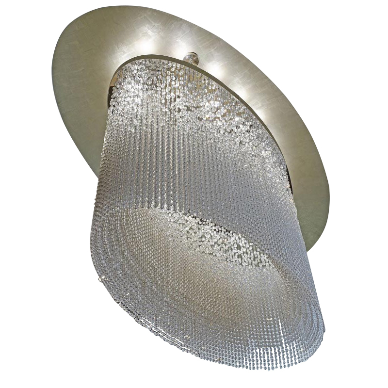 Bring attention to your living space with this five-light chandelier. Its nickel finish and clear crystals interlace to create a beautiful addition to your home. This modern chandelier features various crystals designs that create a shimmering effect to leave your family and friends in awe. Attract attention, provoke emotion to the imagination with games of light and matter. Such as the ambition and creative spark of the “Fontaine" style. Crystal is a beautiful material. It has been with us for centuries and remains one of the most widely used components for chandeliers for its unworldly quality of reflecting light. This hanging light sculpture looks interesting from any angle and makes nice shadows. At Alan Mizrahi Lighting Design, we especially emphasize exclusive creations, made by designers at home and abroad. No mass products, but one by one characteristic designs that offer you the possibility to add your own unique touch to your interior. Amazing lightening effects are able to change any space and to turn it into some unique place with a magic atmosphere.