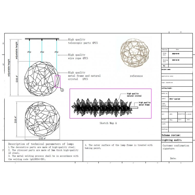 The piece takes inspiration from the surrounding Imperial carpets from the Qing Dynasty (1644-1911) that hang on the nearby walls. These carpets originally come from the palace at the Forbidden City in Beijing and depict dragons, phoenixes, and flowers, symbolising the Emperor and Empress. The chandelier is made of an inner and outer sphere. More angular shaped crystals on the outer layer represent the dragons and their protection of the realm. Rounder shaped crystals on the inside reference the idea of the floral world, paradise and the Empress. Attract attention, provoke emotion to the imagination with games of light and matter. Such as the ambition and the creative spark of the “Celestial Spheres” style.
