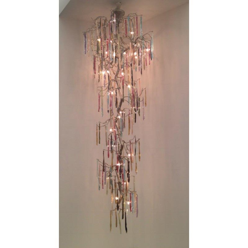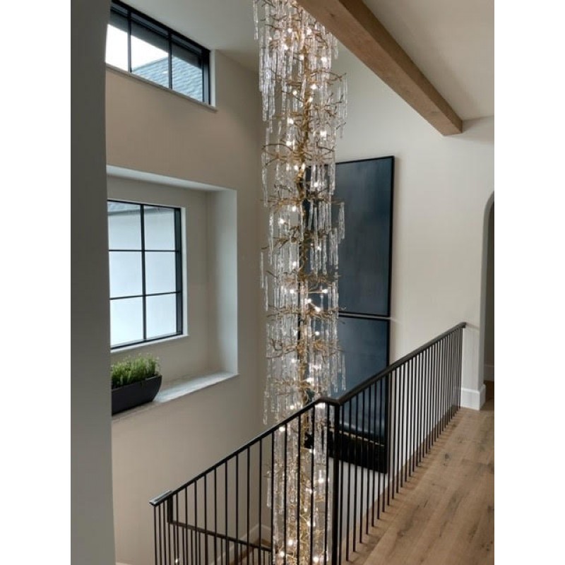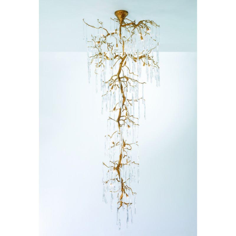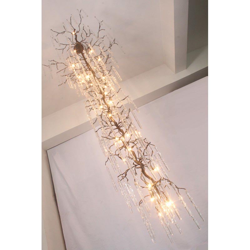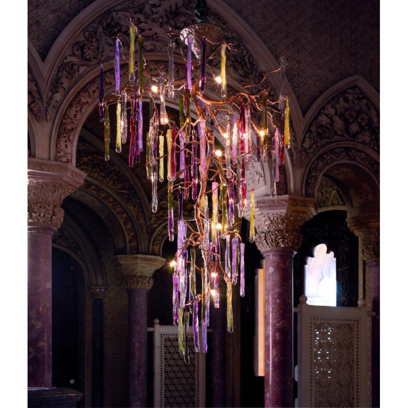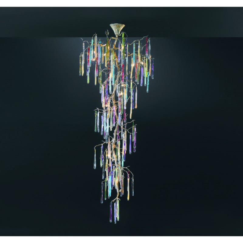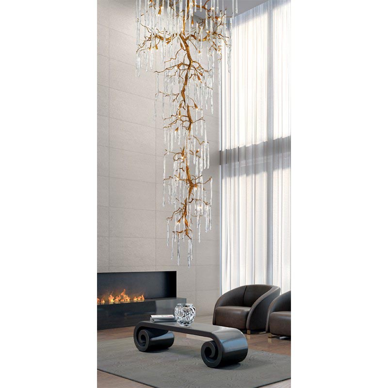 Winter nature, where trees become sculptures of icy drops. These lighting installations with inherent organic presence spread downwards and along ceilings and walls, being able to be an effectively adaptable piece in any interior. Regardless of the model design, the collection exposes an interesting dualism of weights and materials, in a varied range of chromatic and finishing options to be chosen for each project. The possibility to create any kind of color combination opens the way to a versatile outcome, establishing a limitless key-piece.