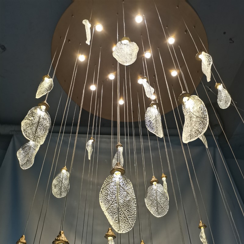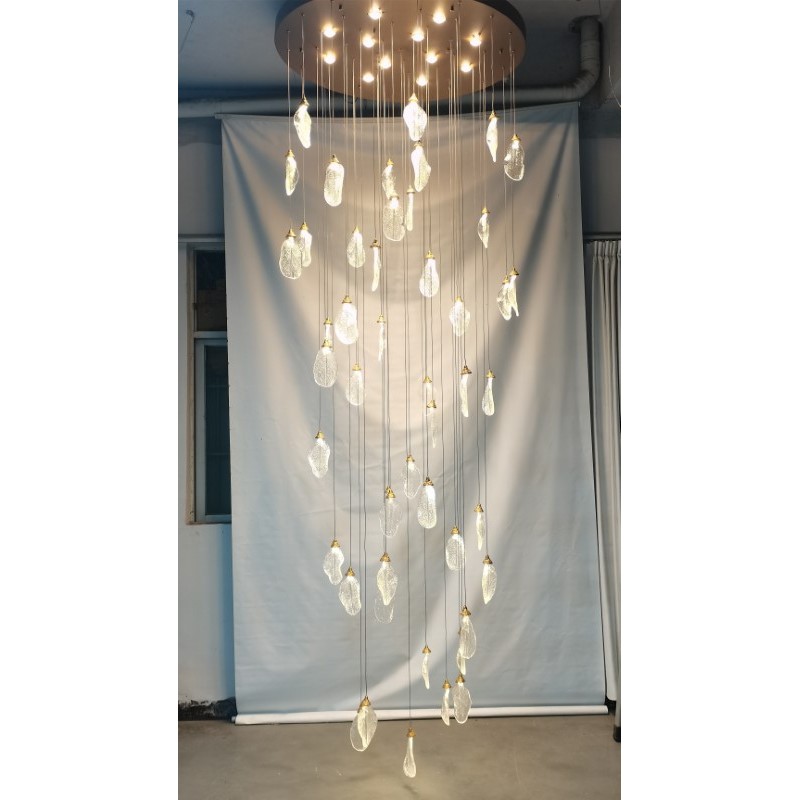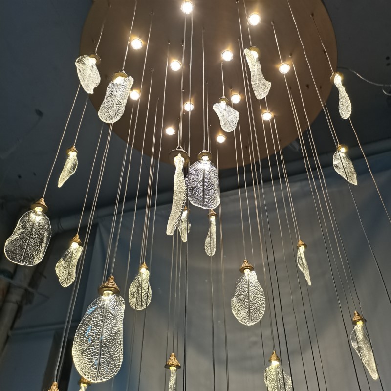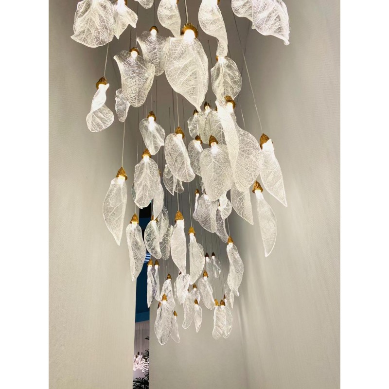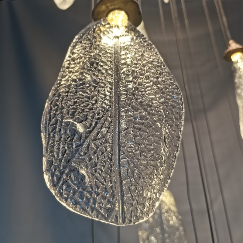 Original one of a kind chandelier. No two alike, each chandelier created from this design is a one of a kind. This hanging light looks interesting from every angle, and creates enticing shadows. One of the most technical chandeliers created. We approach this sculptural object in a contemporary, unexpected and creative way. Light and shadow interplay while existing harmoniously, using both to manipulate