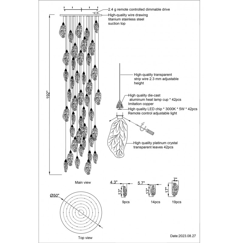 120" Diameter x 145"- 186" Height (as shown on image) $18,450.00