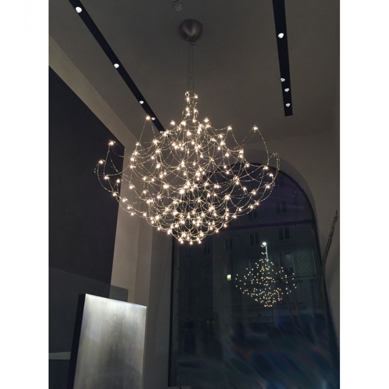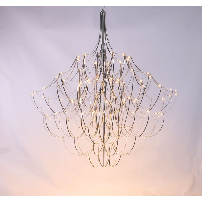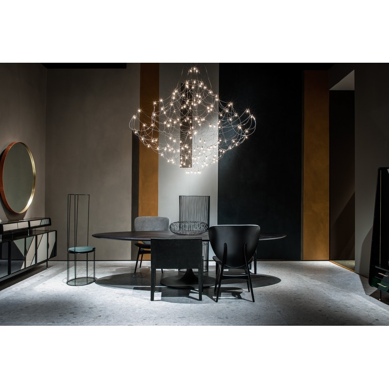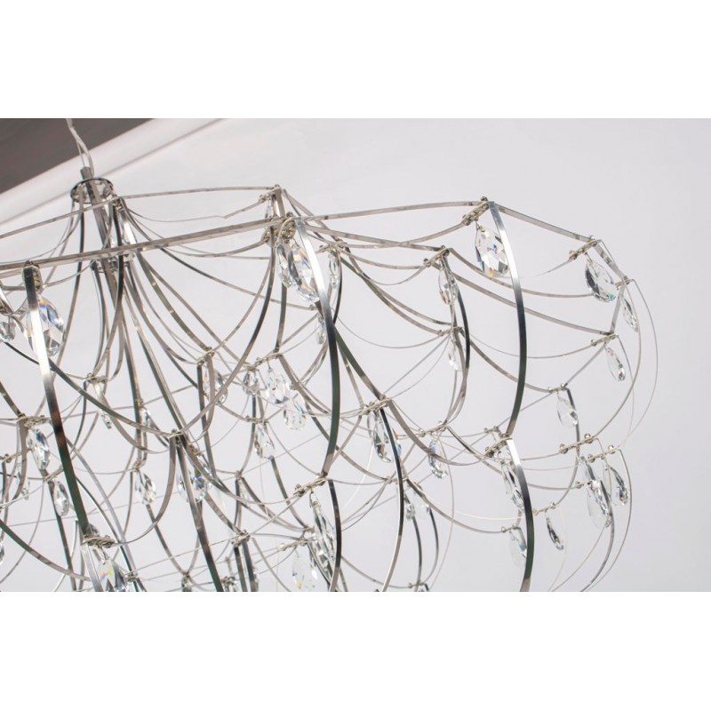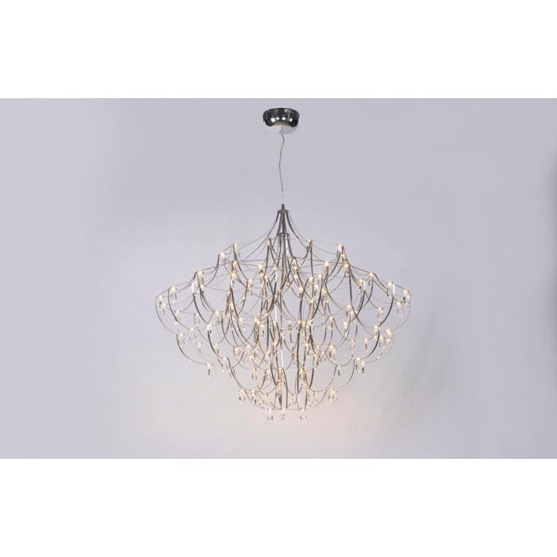 Baxter is a suspension lamp. Curved nickel rows, connected with special clamps with the incorporated bulb holder.