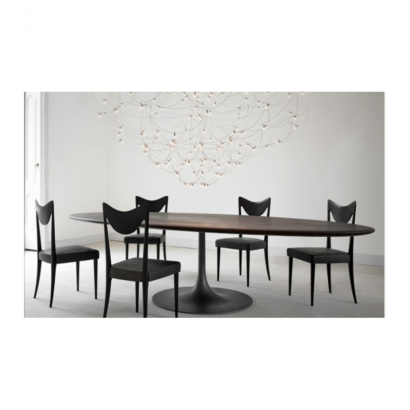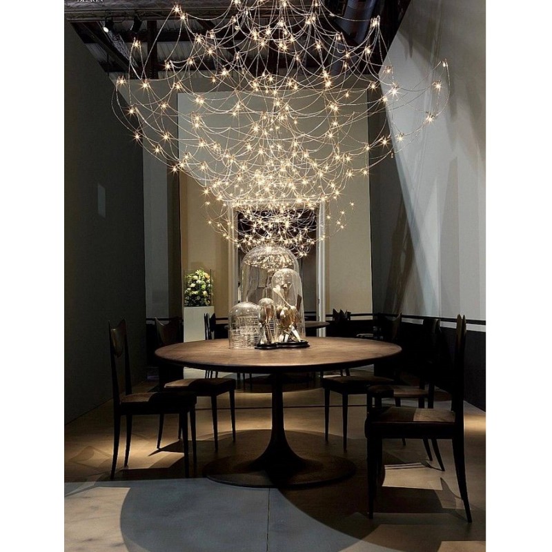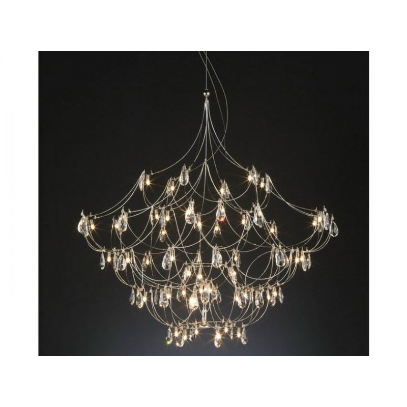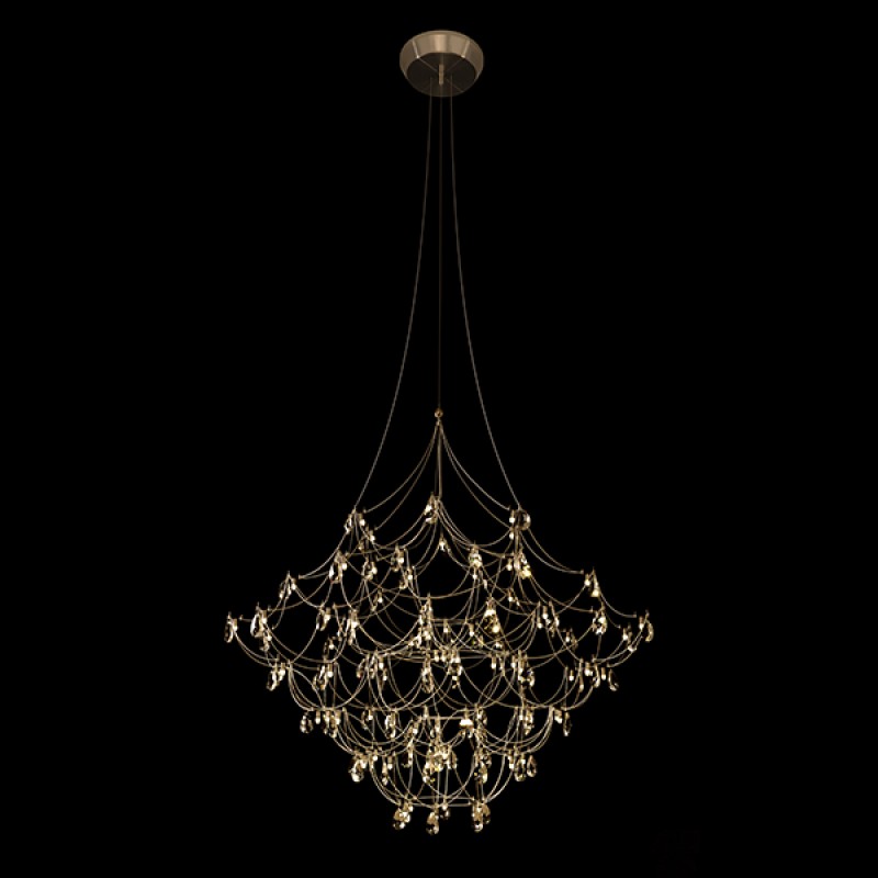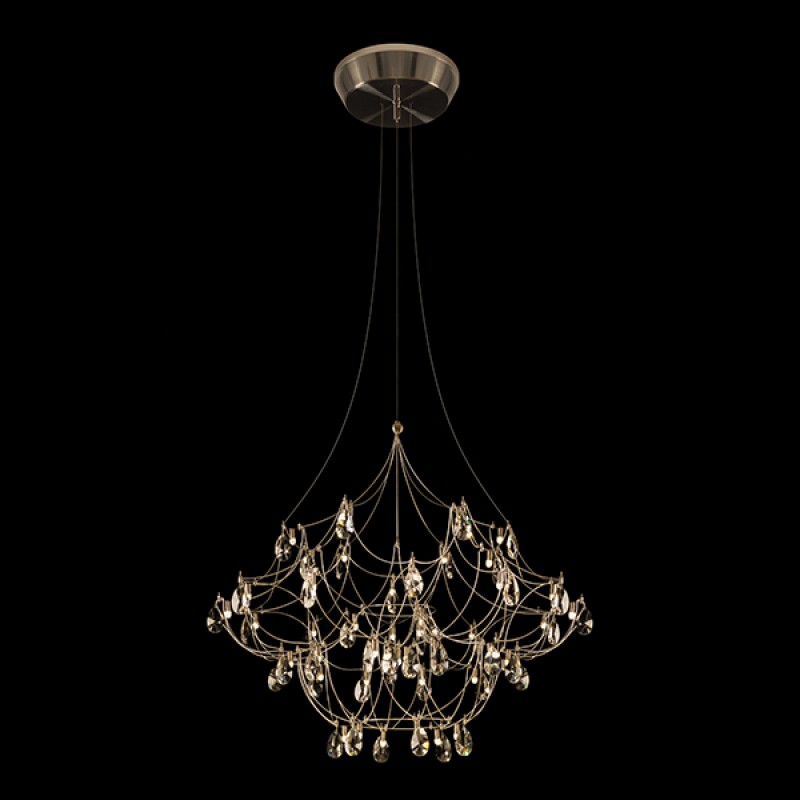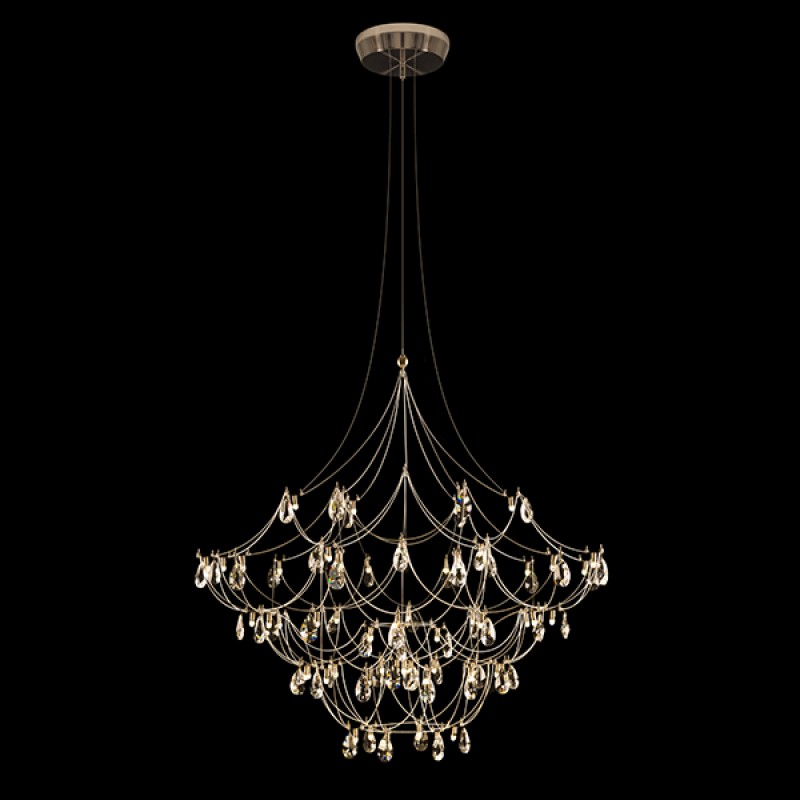 Baxter is a suspension lamp. Curved nickel rows, connected with special clamps with the incorporated bulb holder.